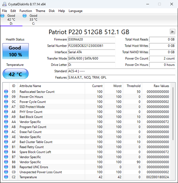 | Patriot P220 512 ГБ | 30503 | 51726 | 51825 | 51842 | 51758 |
