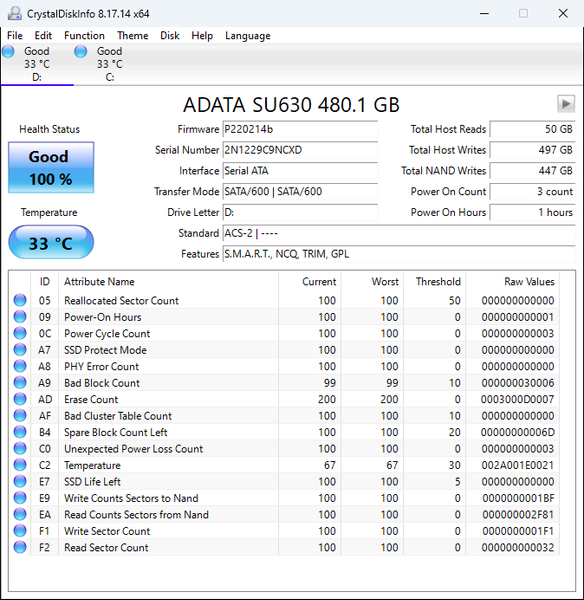 | Adata Ultimate SU630 480 ГБ | 443,1 | 442,9 |