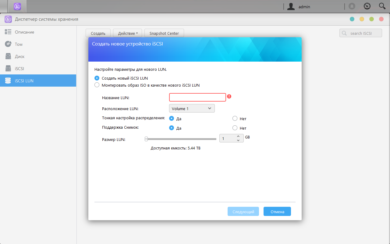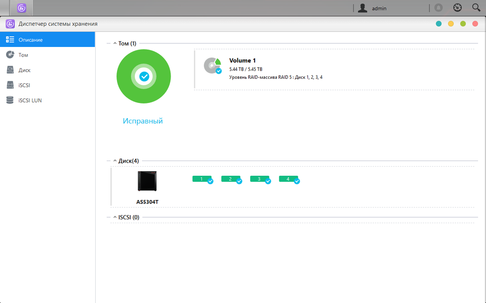 Сервер поддерживает протокол iSCSI и основные настройки для него, включая контрольные суммы, аутентификацию, маски инициаторов, гибкое выделение пространства для LUN.