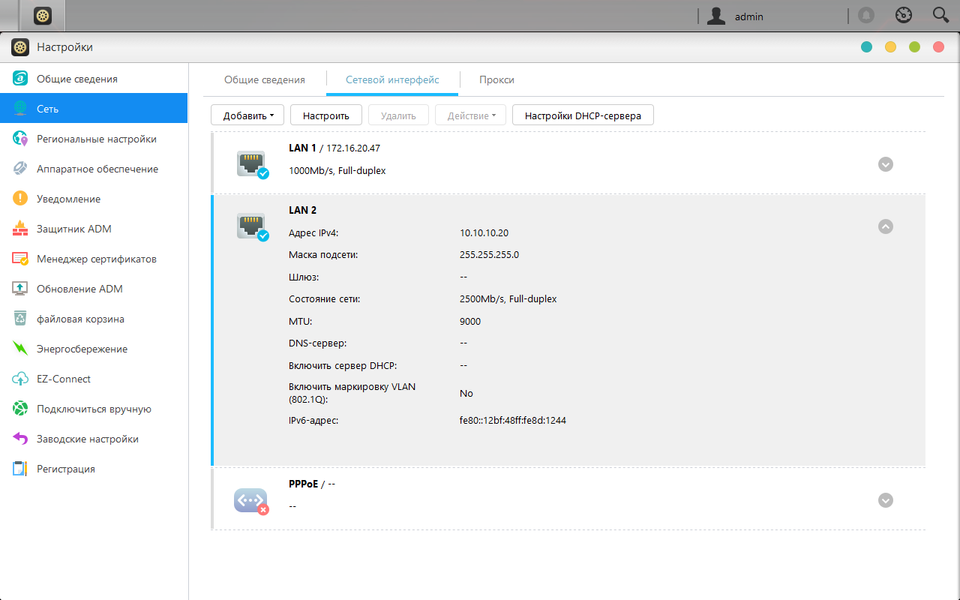 Для подключения к локальной сети установлены два контроллера Realtek RTL8125 на шине PCIe 2.0 x1. Они поддерживают работу на скоростях 10/100 Мбит/с и 1/2,5 Гбит/с при работе по медной витой паре.