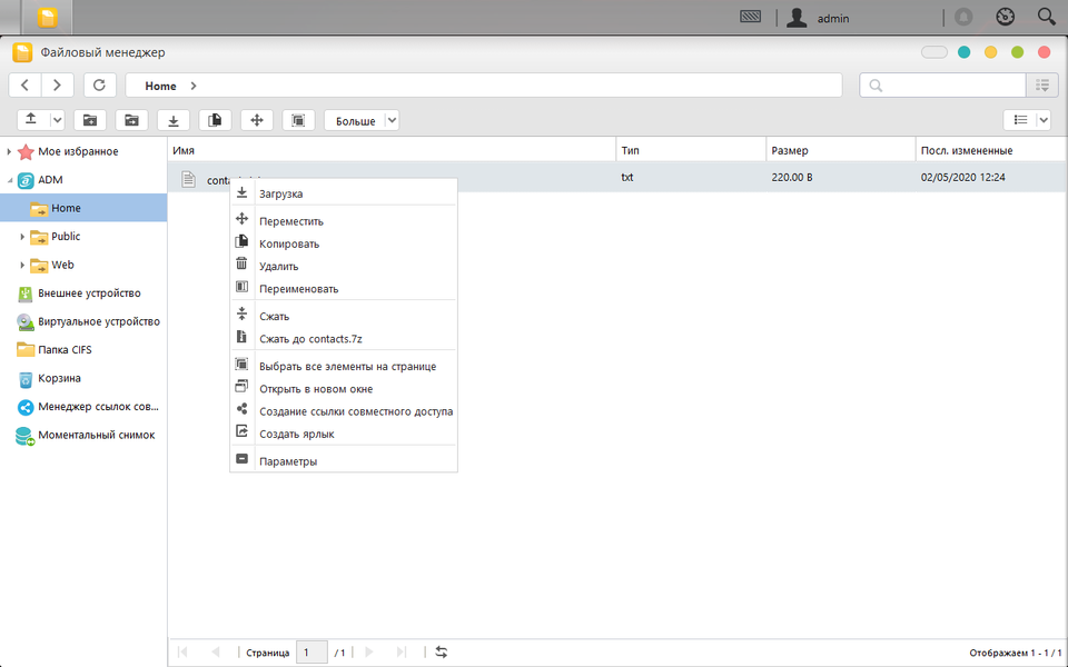 Пожалуй, самым популярным является файловый менеджер. Он позволяет через браузер управлять файлами на сетевом накопителе, монтировать удаленные ресурсы, создавать ссылки общего доступа и осуществлять другие операции.