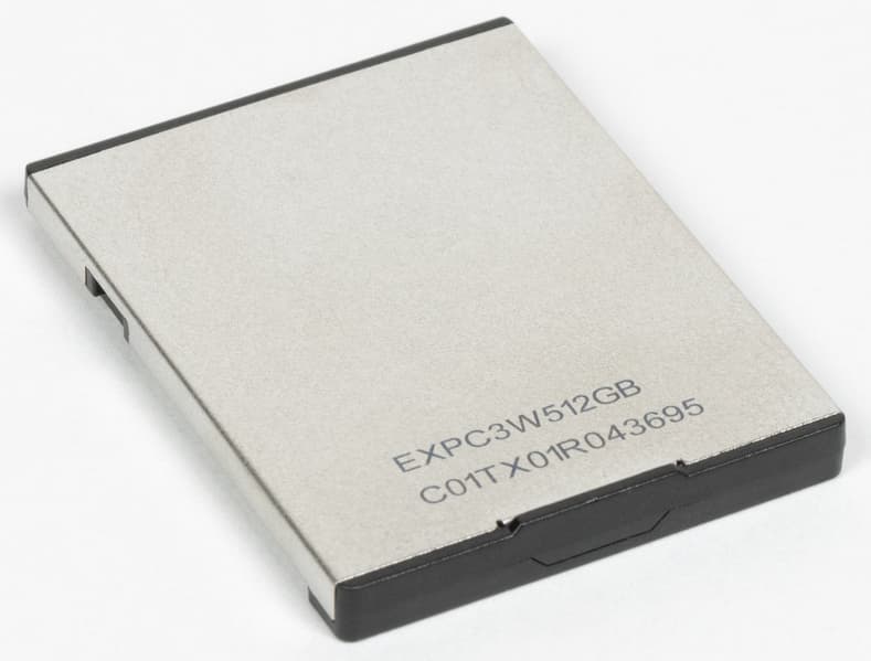 Эта карта нам уже знакома — тестировали в прошлый раз. Позиционируется она уже не для фото, а для видео. Но 256 ГБ в линейке тоже есть — и тоже с кэшем. И тоже если обращать внимание не только на официальные заявления, а на сухие цифры, устоявшихся 900 МБ/с пока достаточно для самых сложных применений. В частности, максимальный режим 8К N-RAW 60 кадров в секунду Nikon Z9 в них укладывается. Вот в низкую емкость — уже не очень: когда каждая минута съемки сжирает десятки гигабайт, нужны уже терабайты свободного места.