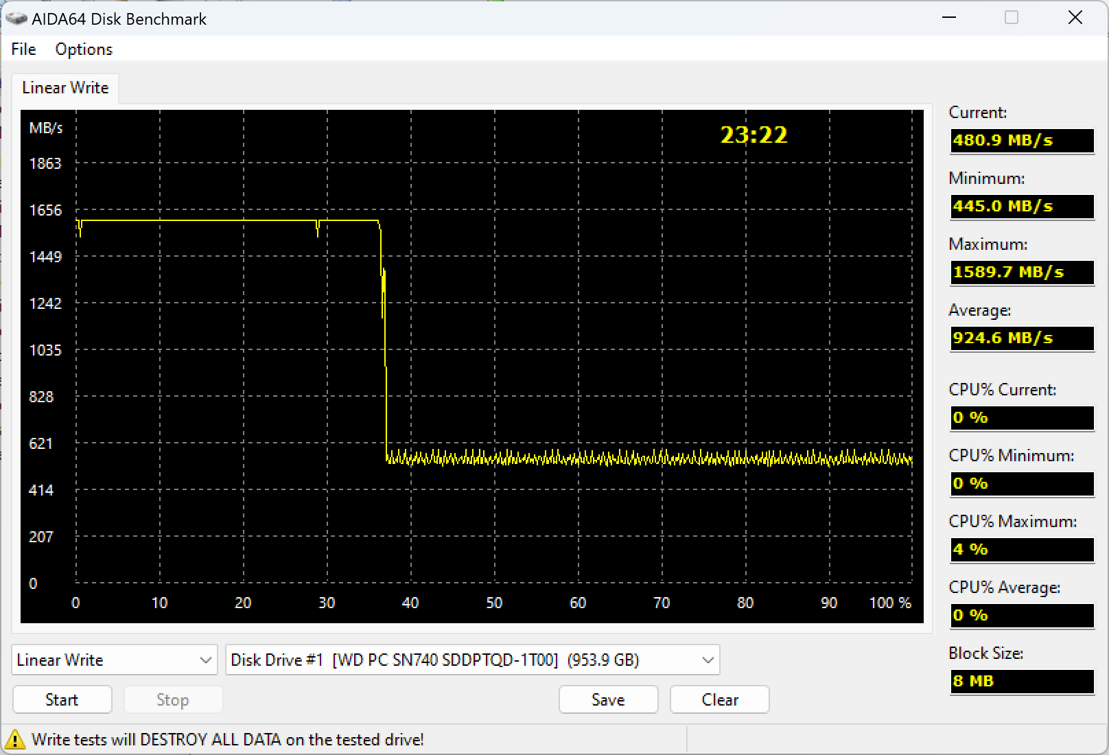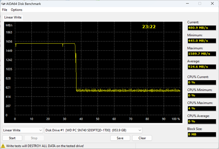 | WD PC SN740 1 ТБ | 1815,7 | 1814,5 |