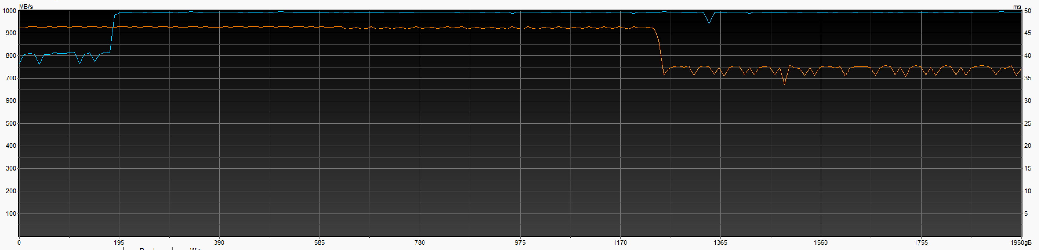 Так что с одной стороны надежды на быстрый и компактный накопитель не совсем оправдались. Но можно взглянуть на ситуацию и с другой стороны, обратив внимание на конкретные объемы работы, вызывающие снижение скорости. Они немного разные, однако с практической точки зрения воспринимаются одинаково — даже 600 ГБ это слишком уж внушительное значение. Их надо еще как-то насобирать на быстром накопителе, а потом одним махом записать на внешний SSD. Точнее, накопить придется еще больше — с таким-то количеством данных оба испытуемых справляются влет. Да и заметить невооруженным глазом первую ступеньку всё равно невозможно — это снижение скорости с 1,6 ГБ/с до 1,4 ГБ/с. Так что не исключено, что эту проблему на самом деле никто решать и не пытался — всё равно с ней столкнуться могут разве что тестеры. Которые и эти самые терабайты для записи на высокой скорости найдут, и условия для работы на максимальной скорости обеспечат.
