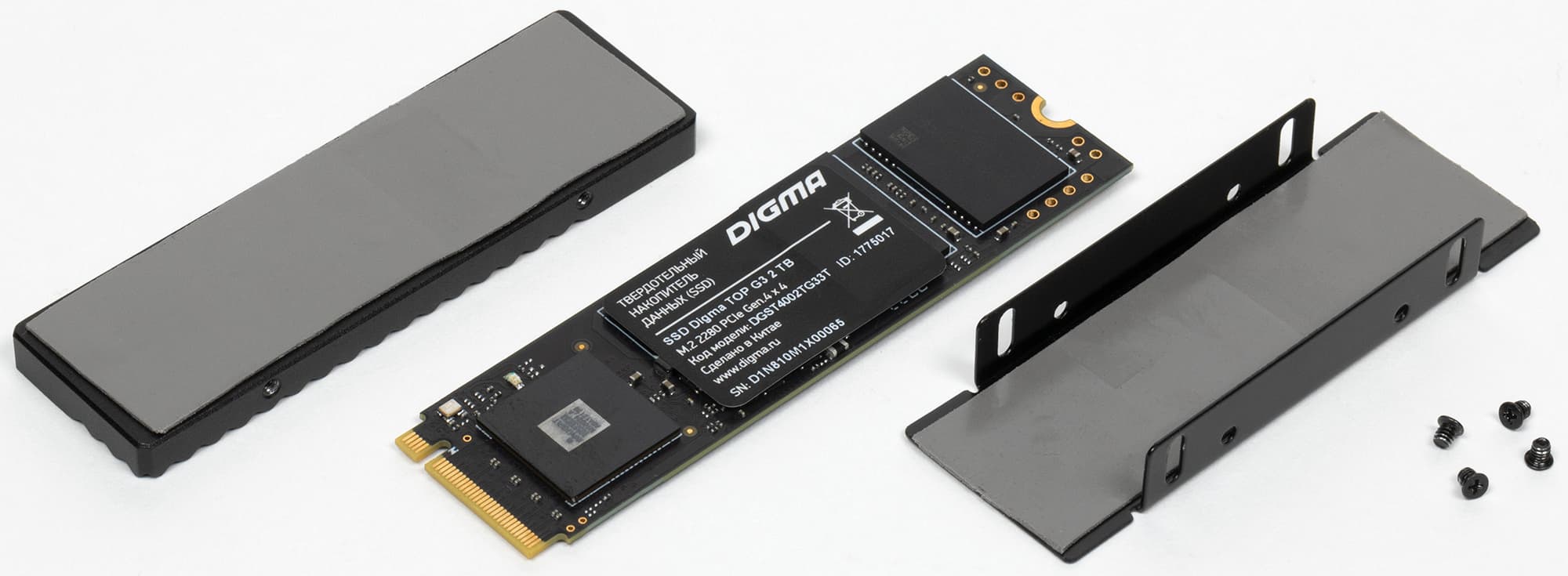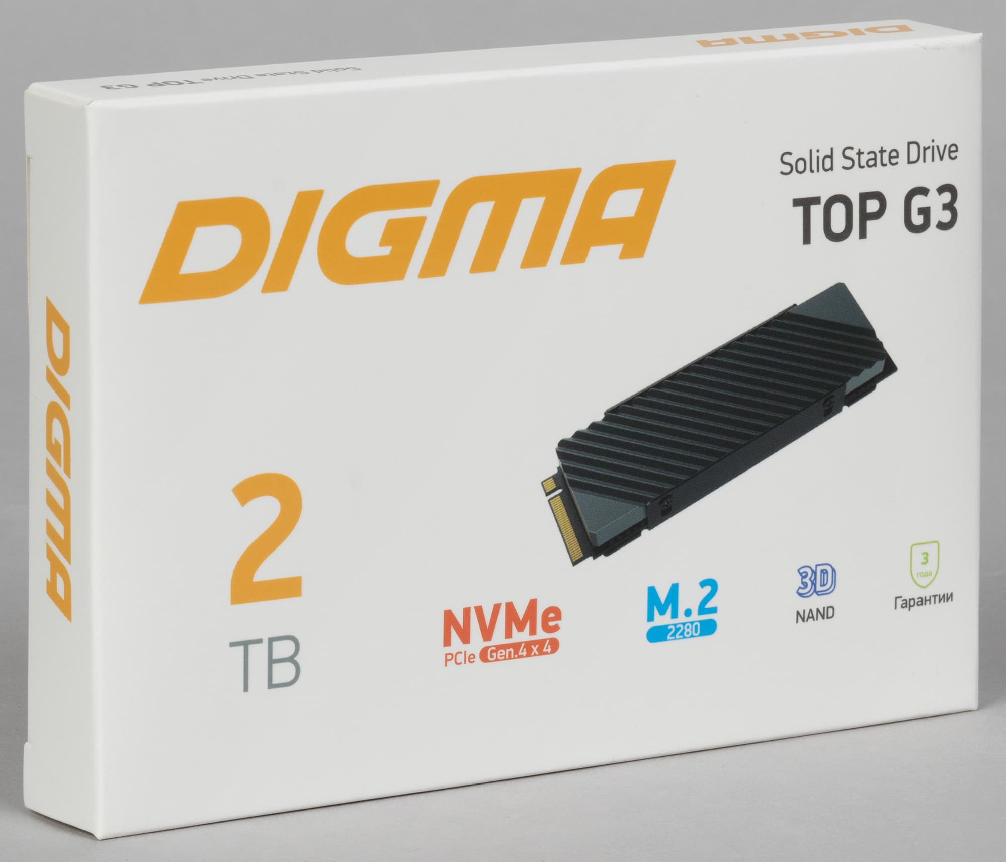 Зато линейке Digma Top G3 всегда жилось проще. Контроллер InnoGrit IG5236 в табели о рангах «живет» немного ниже, чем Phison E18. На деле относится к тому же топовому классу, технически слабо отличаясь от аналогов, но сам его разработчик многими всё еще воспринимается как выскочка — история InnoGrit куда более короткая, чем у большинства конкурентов. Но основное, на чем это сказывается — список использующих его компаний. Здесь не найдешь ни Kingston, ни Seagate — максимум Adata, а то и вовсе условные «китайцы», типа Netac. Конкурировать в таких условиях, естественно, проще. Да и сам контроллер дешевле, что благотворно сказывается на цене — Top G3 всегда стоил дешевле, чем Top P8. Что усугублялось и разными модельными рядами по емкости — в младшей (условно) линейке нет и не было пафосной емкости 4 ТБ, зато есть «народный» SSD всего на 512 ГБ — и по цене меньше пяти тысяч рублей. И тут можно долго спорить об оправданности такой емкости при такой платформе — но желающие купить недорого накопитель на потенциально мощной базе есть. Пусть даже и в ущерб емкости — что эту потенциальную мощность не дает прочувствовать, но, раз покупатели есть, кто-то должен ими заниматься. Плюс даже при невысокой цене все Top G3 штатно комплектуются системой охлаждения. Не факт, что такой уж необходимой для типовых сценариев использования, но IG5236 к «холодным» контроллерам не относится, да и вообще такие в полной мере в этом классе искать странновато. Получается, в частности, неплохое решение для модернизации PlayStation 5 — в полной мере соответствующее не только обязательным требованиям Sony (среди которых, например, поддержка PCIe Gen4 — ни один SSD, ограниченный Gen3, в этой консоли работать не станет), но и всем ее рекомендациям. И тут даже младшая модификация может оказаться полезной, не говоря уже о более емких. Тем более, что и Top G3 на 2 ТБ стоит в нашей рознице около 13 тысяч рублей — за эти деньги и «приличный» SATA SSD аналогичной емкости найти-то не всегда просто. Поэтому мы не будем мелочиться, а именно с таким SSD и познакомимся подробно.