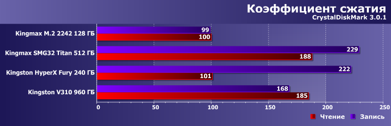 При записи же данных способность уменьшить количество этой самой записи важна всегда. Для DuraWrite это связано со сжатием — SmartZIP же особым образом обрабатывает «чистые нули» и только. В чем мы в очередной раз убеждаемся.
