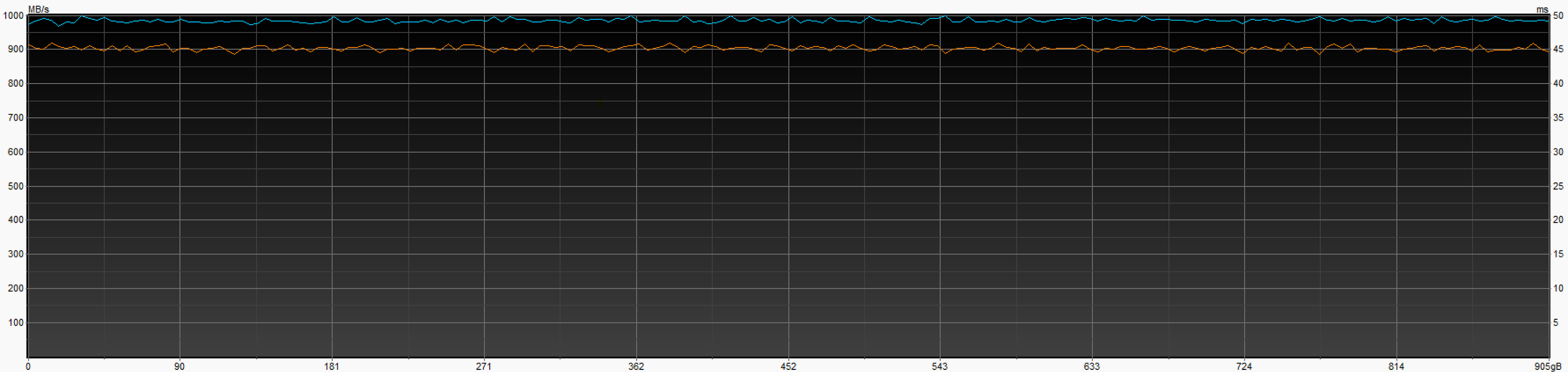 Да и особая информативность сегодня не требуется, поскольку мы изначально знаем, как должен выглядеть идеальный график. И то, что его можно получить в теории — тоже знаем. Теперь можем убедиться в том, что F951 в режиме Gen2 рисует его на практике. Это действительно идеал — когда скорость целиком и полностью упирается в возможности интерфейса, чему ничто не мешает. Память оказалась достаточно быстрой...