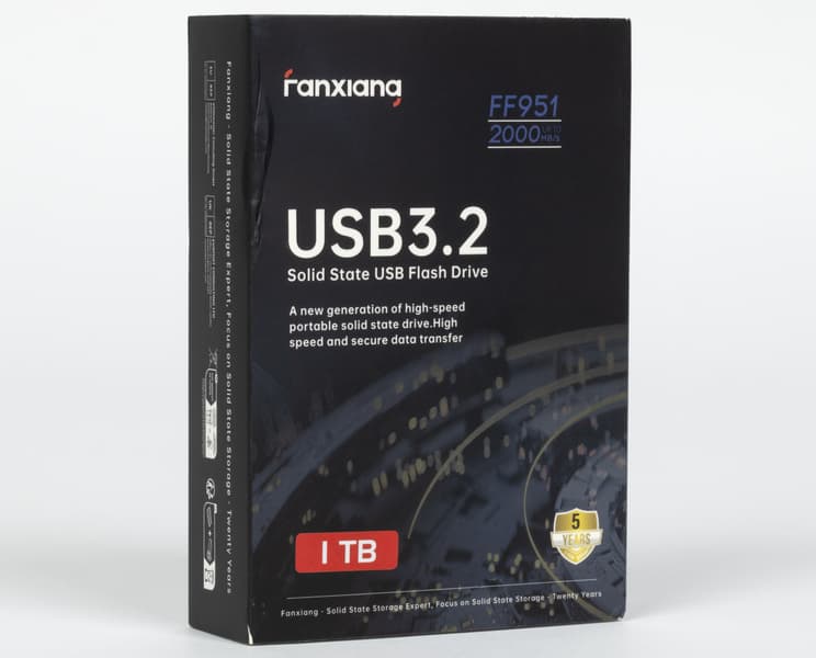 Традиционная неразбериха китайского нейминга: производитель называет эту флэшку F951, но на коробке красуется FF951, софтом она определяется так же. И у двух других аналогичные проблемы — работать не мешающие, но искать устройство в магазинах или просто писать про него немного сложно. Но мы уже не раз отмечали эту проблему таких производителей: сделать хорошую вещь они могут, а вот хорошо назвать — не всегда. Качественные маркетологи — товар все-таки штучный. Это не инженеры, которых можно миллионами клепать из кого угодно. А с маркетологами в Китае пока плохо. Хотя по мнению некоторых, это, наоборот, хорошо :) И еще один нюанс из той же области — накопитель позиционируется именно как флэшка (USB Flash Drive — UFD), хотя мировые бренды предпочитают от таких продуктов дистанцироваться, называя скоростные модели на такой базе портативными SSD (Portable SSD — PSSD). Стоит ли считать такую скромность похвальной? Сомнительно. С другой стороны, жаловаться на продажу более ценного меха обычно не принято, так что и мы не будем.
