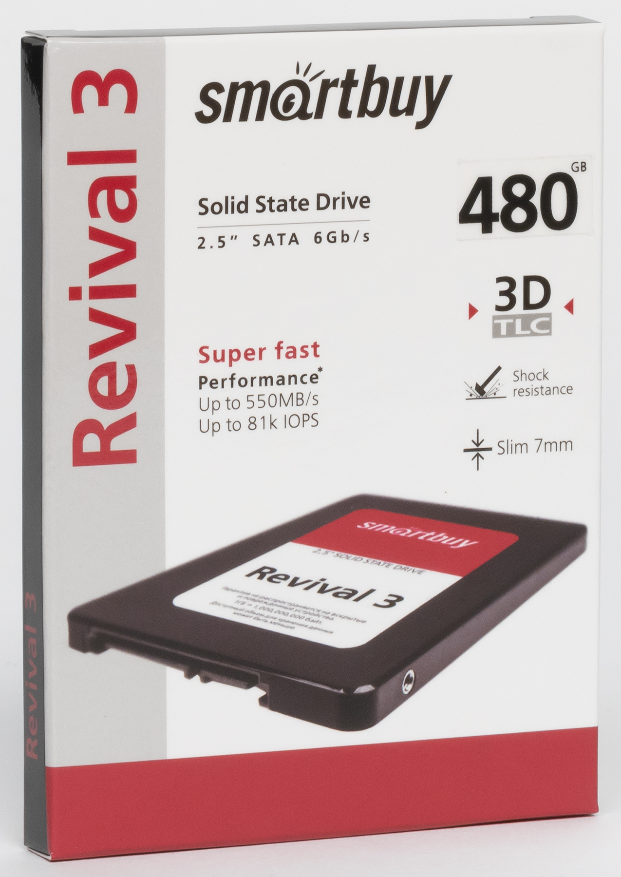 В отличие от Gigabyte и Seagate, в ассортименте SSD SmartBuy можно найти самые разные контроллеры. К чести компании, она старается «разносить» их по разным линейкам — и даже как-то отображать в названии семейства тип памяти. Например, первый Revival был построен на «буферном» Phison S10 и планарной TLC-памяти Toshiba, в Revival 2 компания перешла на более дешевый (но и лучше подходящий для TLC) S11, оставив планарную память, а Revival 3 — это оно же, но с 3D TLC. Первое время — как раз BiCS3, что и послужило причиной выбора данной модели вместе с остальными двумя сегодняшними героями.