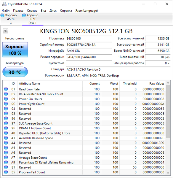 | Kingston KC600 512 ГБ | 510,7 | 510,2 |