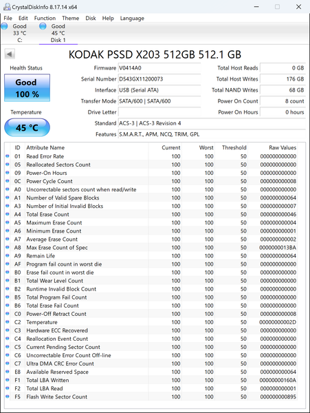 | Kodak X203 512 ГБ (без Trim) | 491,3 | 115,4 |