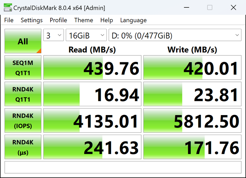| Netac US5 512 ГБ | 448,0 | 383,6 |