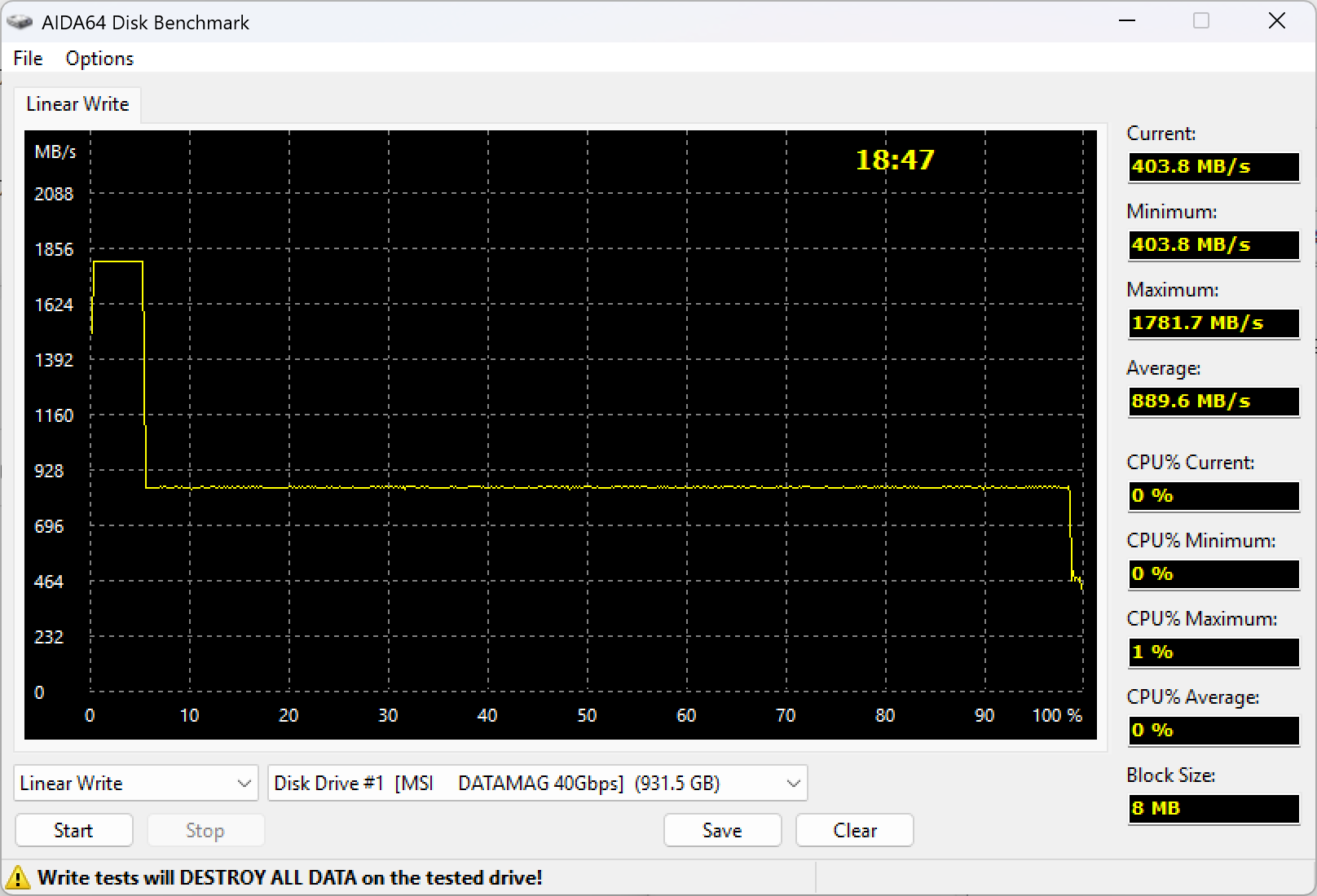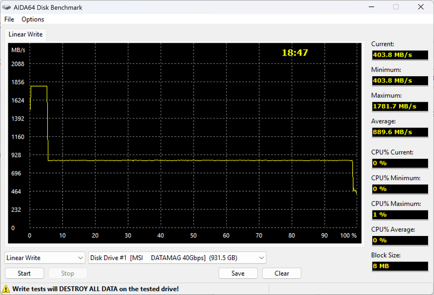 | MSI Datamag 40Gbps 1 ТБ (20 Гбит/с) | 1991,9 | 1982,5 |