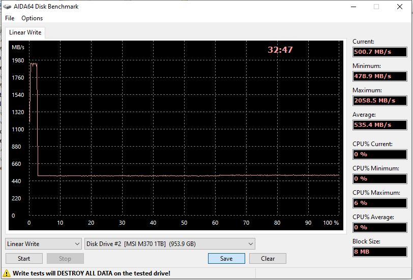 | MSI Spatium M470 1 ТБ (PCIe 3.0) | 2073 | 2048 |