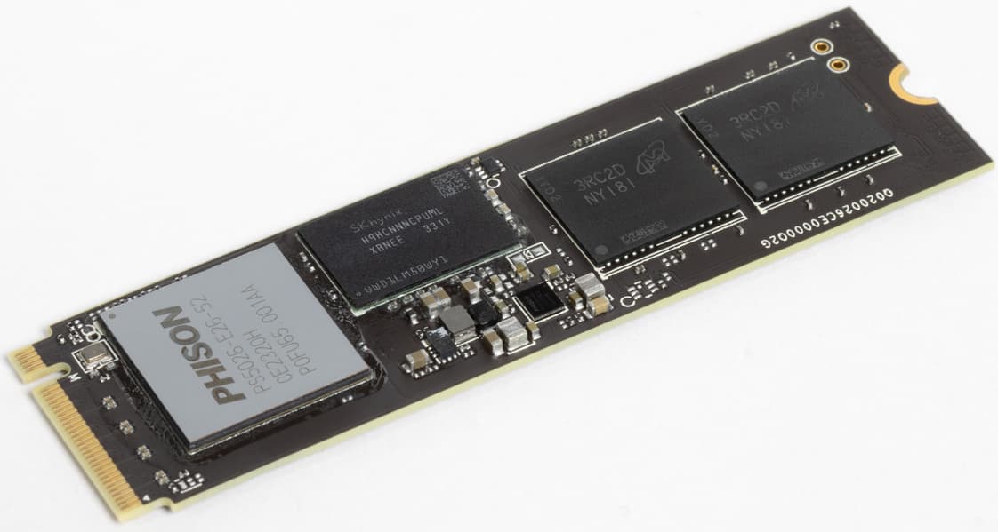 Если разобрать всю конструкцию, добираемся мы до типового SSD на базе Phison E26.