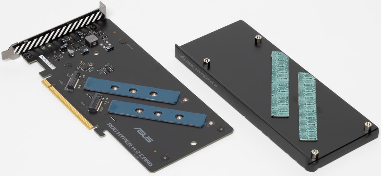 В ее комплекте также есть и специальная плата-адаптер с двумя слотами M.2 и мощным радиатором, который сегодня не пригодился — у SSD штатный еще мощнее. Во-втором процессорном слоте PCIe работает только первый M.2, но для тестирования нам этого достаточно. Главное, что вообще работает — большинство простых дешевых и не очень переходников нормально функционировать в режиме PCIe Gen5 вообще отказываются. Как и предполагалось, требования к качеству изготовления повысились.