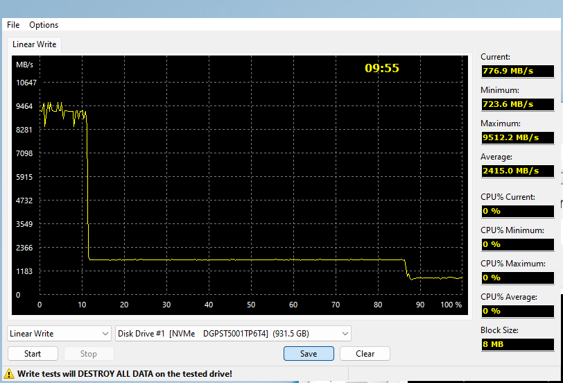 | MSI Spatium M570 Pro Frozr 2 ТБ (PCIe Gen5) | 9706,2 | 8387,3 |