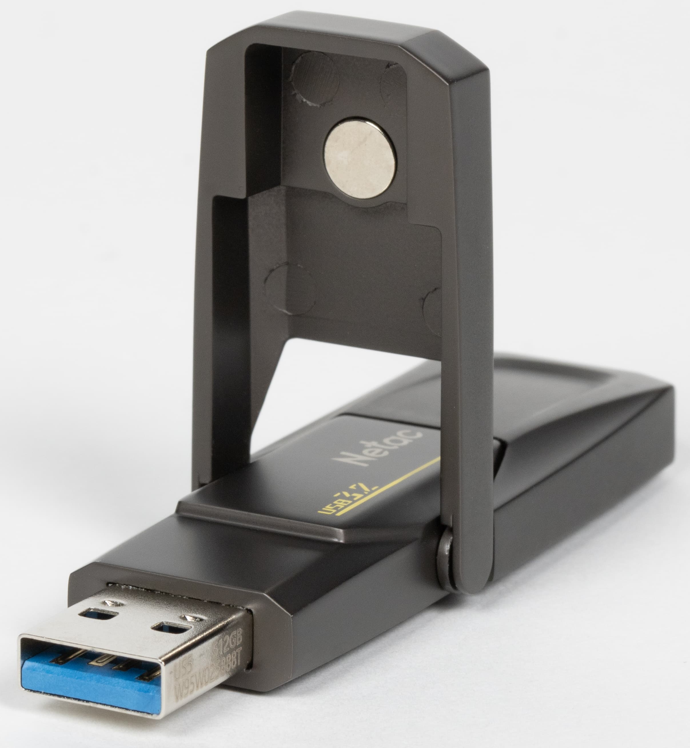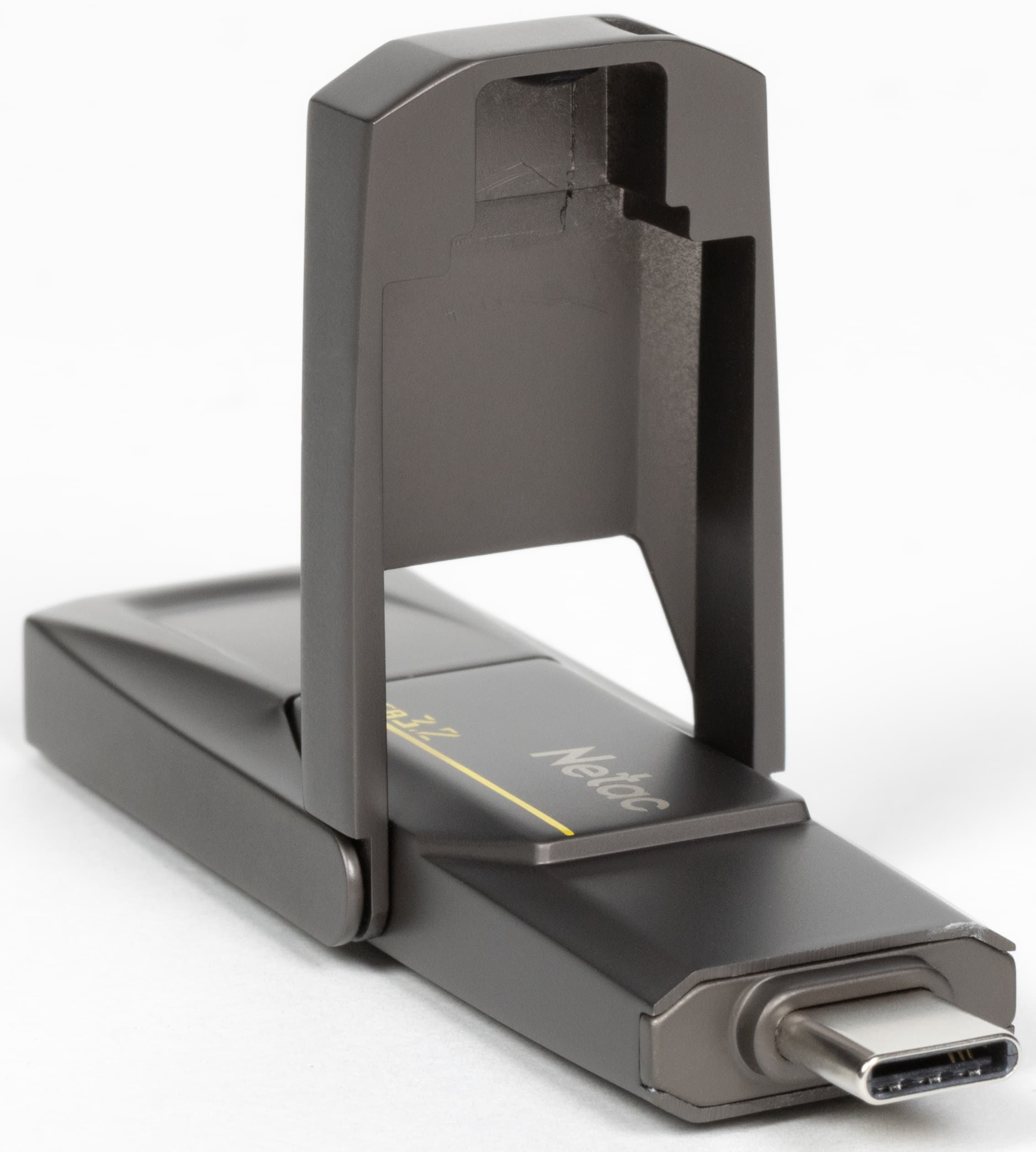 Пожалуй, это лучший вариант из возможных: теряться нечему. И даже если крышки отломаются, основная часть накопителя «выживет», не мешая его дальнейшему использованию. У солидного металлического корпуса есть только один недостаток: он весит 48,5 г, что даже больше, чем у многих пластиковых внешних SSD. Но тем еще и кабель нужен, без которого здесь спокойно можно обойтись. Да и размеры 78×23×9,6 мм все-таки еще флэшечные, а не «эсэсдэшные»: в любой карман накопитель лезет безо всякой классовой ненависти. Собственно, поэтому нам такое исполнение понравилось еще на примере MoveSpeed 2 in 1, в котором обнаружилось, напомним, много несоответствий между заявлениями производителя и фактическим внутренним содержимым. А вот внешность нареканий не вызвала, так что решено было повторить опыт. Да и начинка в данном случае более предсказуемая: поскольку Netac обещает до 550 МБ/с, с уверенностью в 146% можно утверждать, что внутри некий SATA SSD и мост USB—SATA.