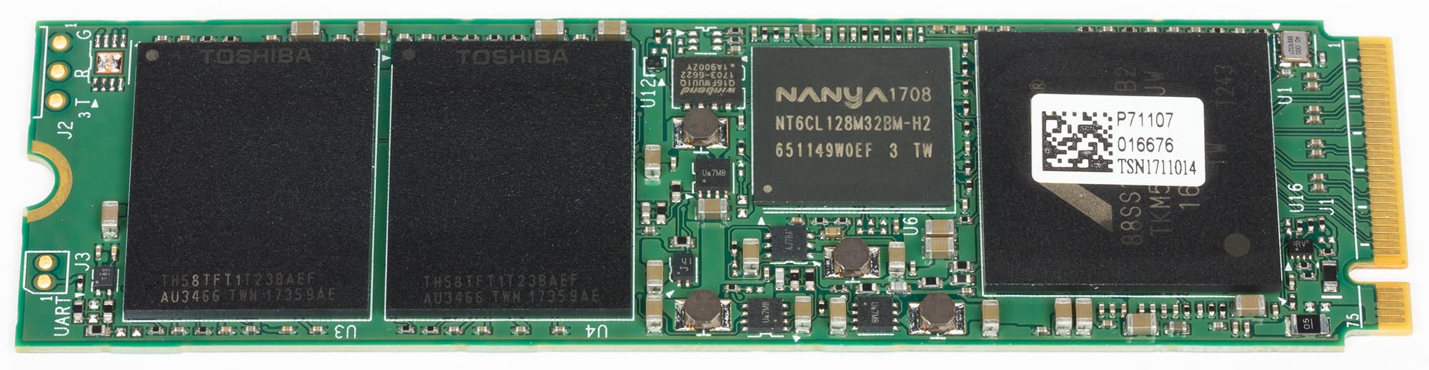 Контроллер во всех NVMe-устройствах Plextor одинаковый, да и менять Marvell 88SS1093 пока особо не на что — более бюджетные разработки тайваньских производителей как минимум не быстрее. Все необходимое для работы с TLC (SLC-кэширование и коррекцию ошибок при помощи LDPC-кодов) он также поддерживает изначально. Что касается емкости кэш-памяти, то она аналогична M8Pe: 512 МБ в моделях на 256 и 512 ГБ и 1 ГБ в терабайтнике. В M8Se DRAM было больше, однако положительного эффекта от этого нам заметить не удалось, а на цену емкость кэш-буфера все-таки влияет. Из-за происходящих на рынке процессов не выросла даже максимальная емкость — возможно, модификация на 2 ТБ появится позднее, но пока такой не предлагается: только 256 ГБ, 512 ГБ или 1 ТБ.