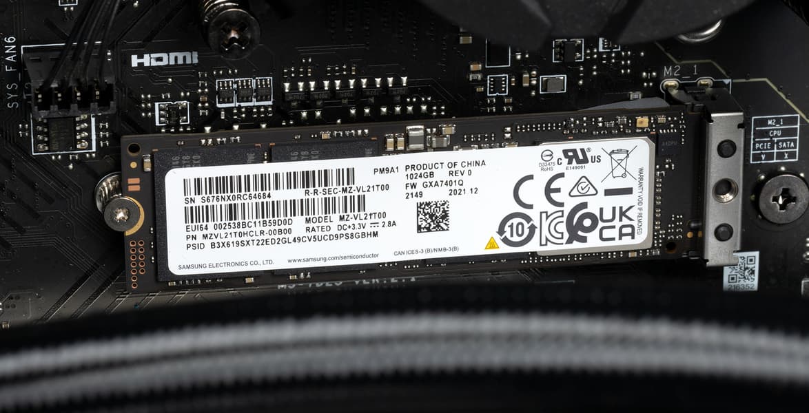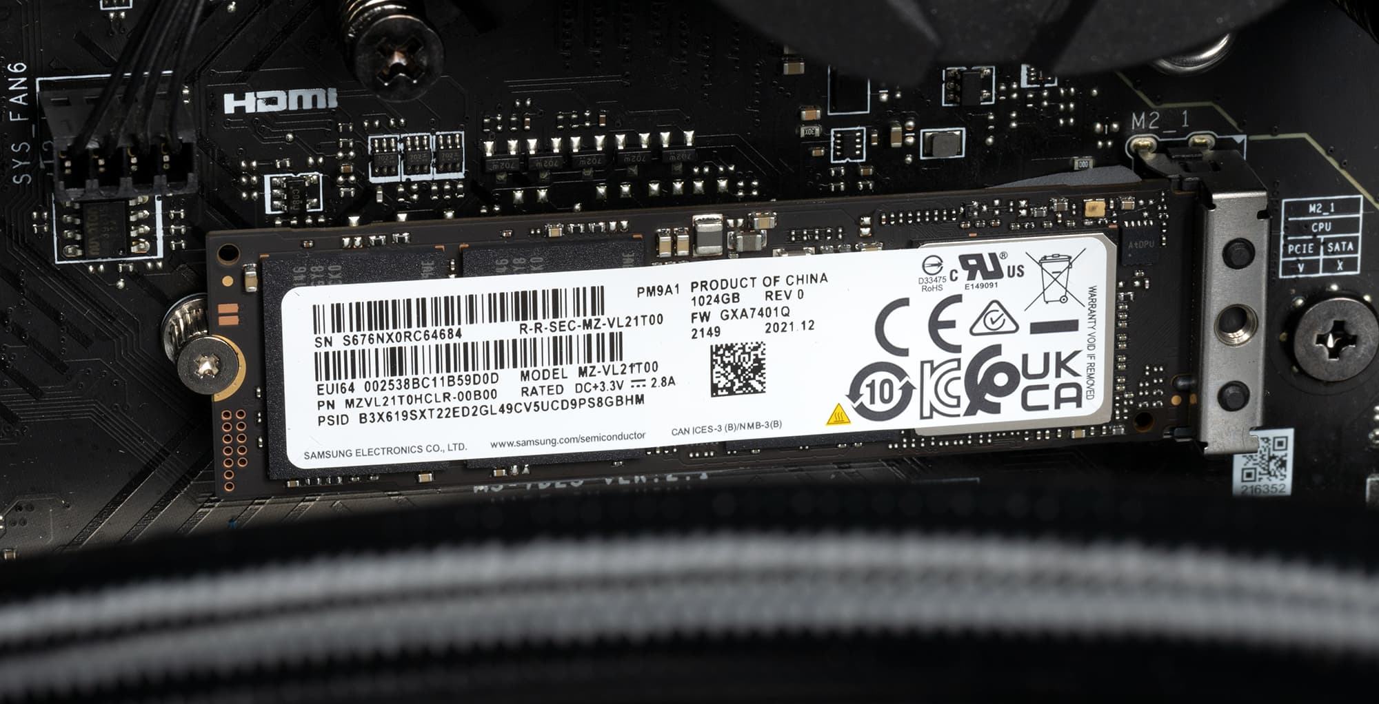 Большого списка нам сегодня не потребуется. В первую очередь нам нужно два SSD Samsung — PM9A1 и 980. Первый — тоже ОЕМ, но уровнем выше, чем PM9B1. А второй — самое дешевое розничное предложение компании, рассчитанное еще на Gen3. Именно этим 980 и «хуже», чем PM9B1, хотя, с учетом вышесказанного про контроллер, на практике не всё однозначно.