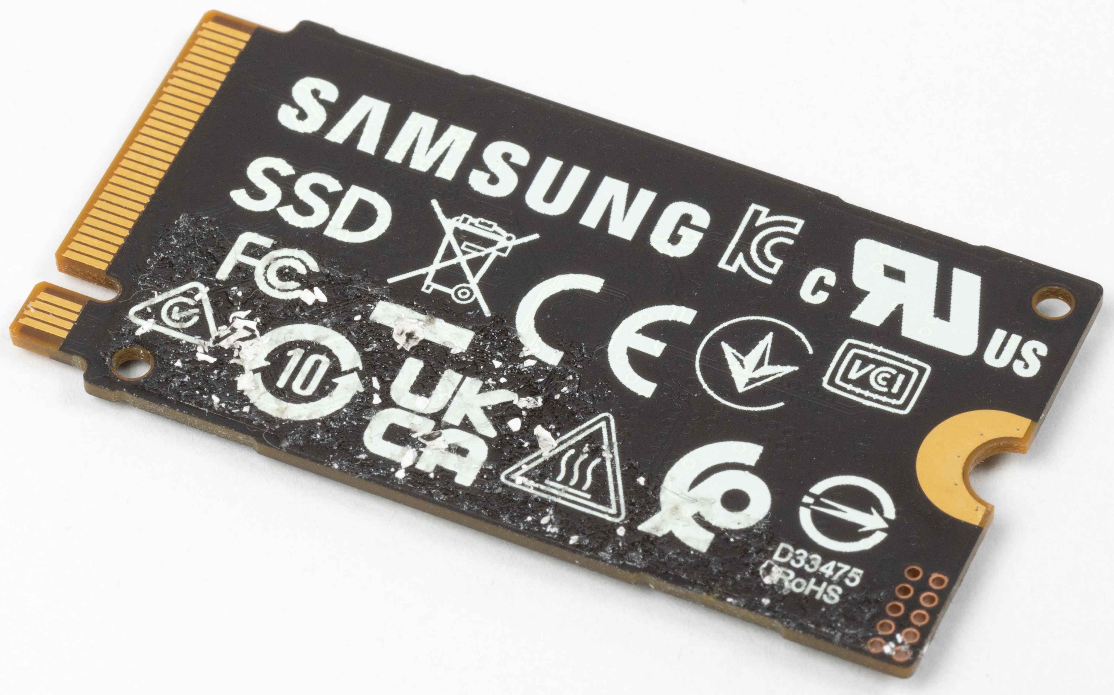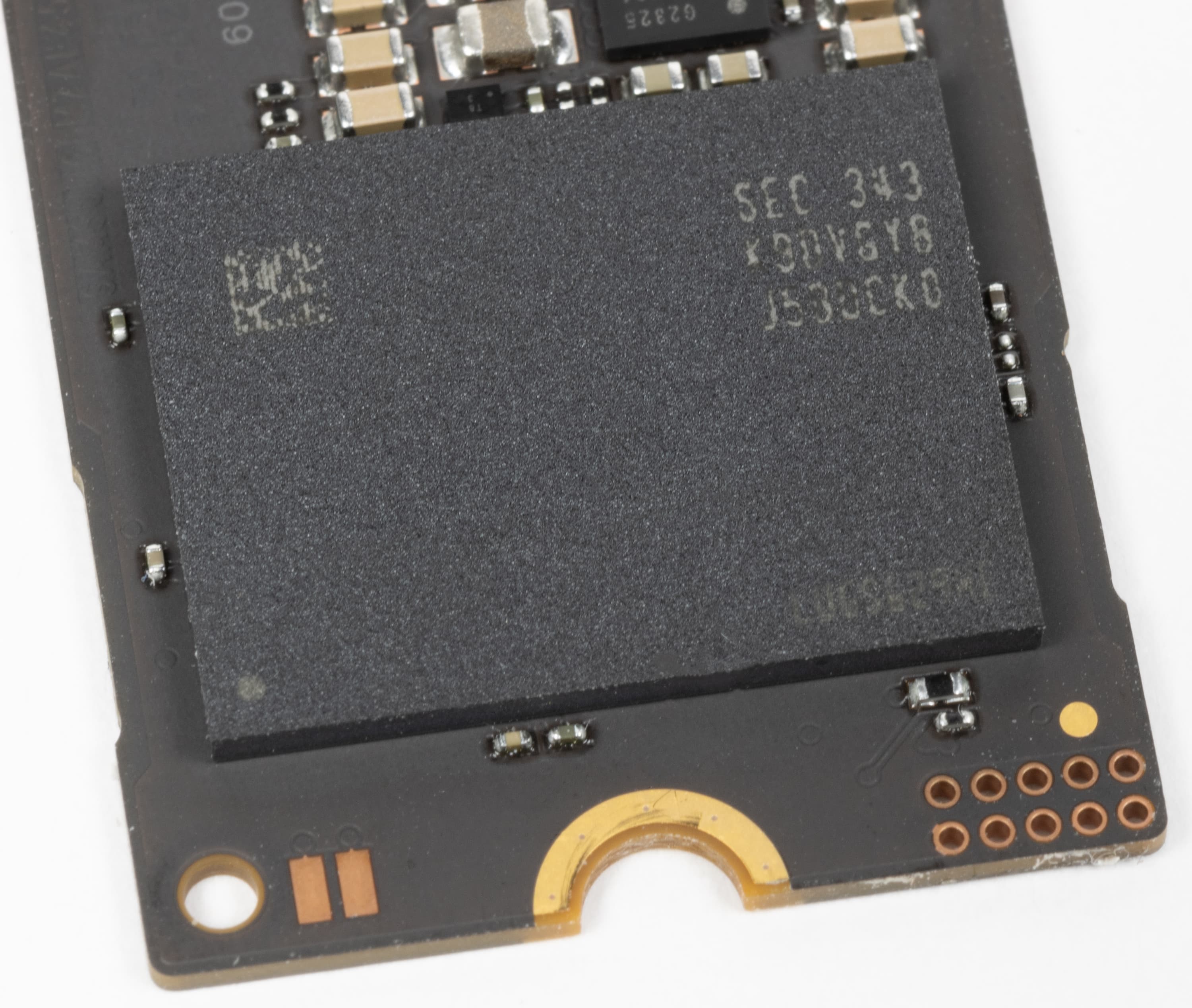Накопители чаще всего встречаются в двух типоразмерах — M.2 2242 и 2280. Мы решили посмотреть на первый, благо такие модели давно не попадались, хотя несколько еще более компактных SSD формата 2230 не так давно изучали. PM9B1 в 2230 немного не поместился — из-за чего огромное количество поставок до последнего времени вообще приходилось на древний Samsung PM991a. Отличительной особенностью последнего является интегрированный в один корпус вместе с флэш-памятью контроллер. Такую схему когда-то любила Kioxia (еще когда называлась Toshiba), работали с ней и другие производители, но сейчас она редка. Единственные достоинства — цена и максимальная компактность. Но не без подводных камней. Во-первых, гибко не поконфигурируешь. Во-вторых, контроллер при работе греется, а для флэш-памяти повышенные температуры вредны, так что собирать всё в одну микросхему — не лучшее решение в расчете на долгую работу и надежное хранение данных. Поэтому схема и утратила свою популярность. И Samsung от нее уйдет известно, каким способом — PM9C1a собран по более «стандартной», но тоже начинается с 2230. И 2242 с 2280 тоже не забыты, так что это уже универсальное решение. Но, повторимся, несмотря на анонс еще в начале позапрошлого года, отдуваться в реальных поставках долгое время приходилось PM991a и PM9B1.