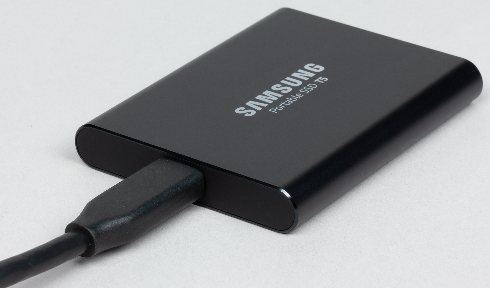 Кстати, о кабелях. В обзоре упомянутого ESD220C мы пожаловались на то, что в комплекте только один кабель Type-А—Type-С, а Type-С—Type-С придется приобретать отдельно. Для T3 это замечание тоже было справедливо, а вот при переходе к Т5 в Samsung его учли: в коробке есть оба актуальных кабеля. Соответственно, независимо от того, к чему планируется подключать устройство, дополнительно ничего приобретать не нужно (за исключением, может быть, случая смартфона/планшета с Micro-USB, но им скоростные возможности внешних SSD не нужны, поскольку они ограничены USB 2.0).