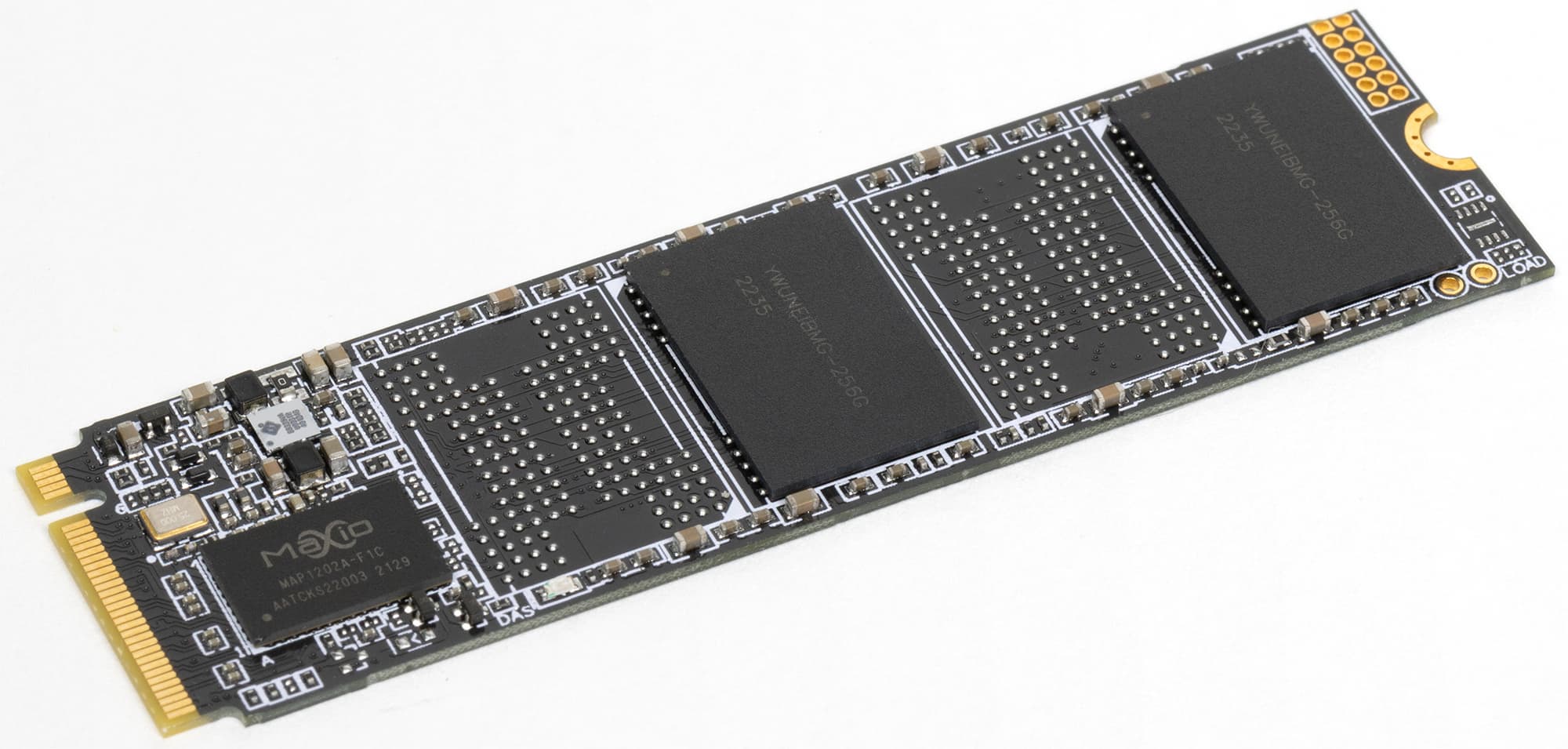 Сегодня настала очередь посмотреть на то, что там у Maxiotek. Фактически это SSD-подразделение JMicron, выделенное в 2016 году в отдельную компанию, но опыт разработки контроллеров непрерывный с 2006 года — когда большинство пользователей ПК еще о твердотельных накопителях не задумывалось. В основном это были SATA-продукты, с некоторыми из которых мы знакомились в разное время (и под маркой JMicron, и как Maxiotek), но сейчас компания, как и прочие разработчики, все силы сконцентрировала на NVMe. В числе прочих были анонсированы когда-то мощные контроллеры с DRAM-буфером — MAP1001 (восьмиканальный) и MAP1003 (четырехканальный), но спросом они не пользовались — слишком сложно попасть в высшие слои общества, особенно когда все знают, что твоя специализация — бюджетная. Безбуферная же модификация последнего решения под названием MAP1002 на рынок попала, но особых следов на нем не оставила — тоже оказалась не лучше конкурентов. Но компания на этом не остановилась, а выпустила MAP1202. Вот он уже активно используется многими, несмотря на появление в ассортименте Maxiotek MAP1602 с интерфейсом PCIe Gen4x4.