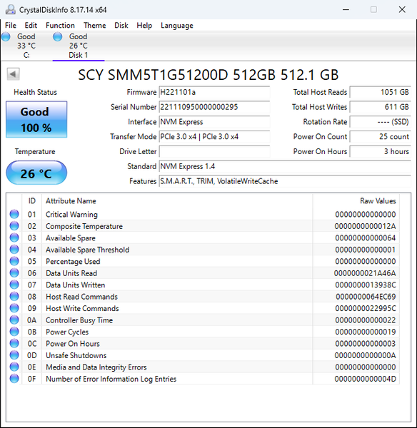 | SCY G3000 512 ГБ | 1821,0 | 1145,8 |