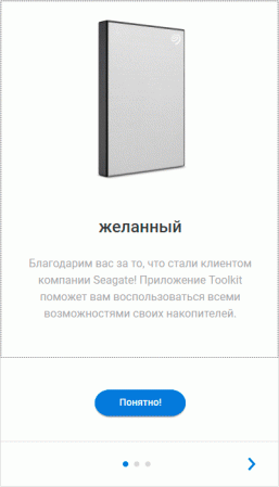 С точки зрения любой системы, внешний винчестер — просто один из накопителей, с которым можно работать так же, как с любым внутренним, и специальные программы для этого не нужны. Однако производители обычно комплектуют свои устройства фирменным ПО — или хотя бы предлагают его скачать. Не является исключением и Seagate: на сайте компании доступна универсальная программа Toolkit. Поскольку она рассчитана на работу со всеми продуктами компании, самым «простым» из них (в том числе Backup Plus Slim) доступна лишь небольшая часть ее возможностей. Желающие могут ознакомиться с подробной документацией, а мы пробежимся по основным функциям вкратце.