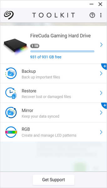 Что же касается подсветки, то на корпусе присутствует всего лишь полоска светодиодов. Настраиваемая — при помощи все того же фирменного приложения Seagate Toolkit, что предлагается для всех продуктов компании.