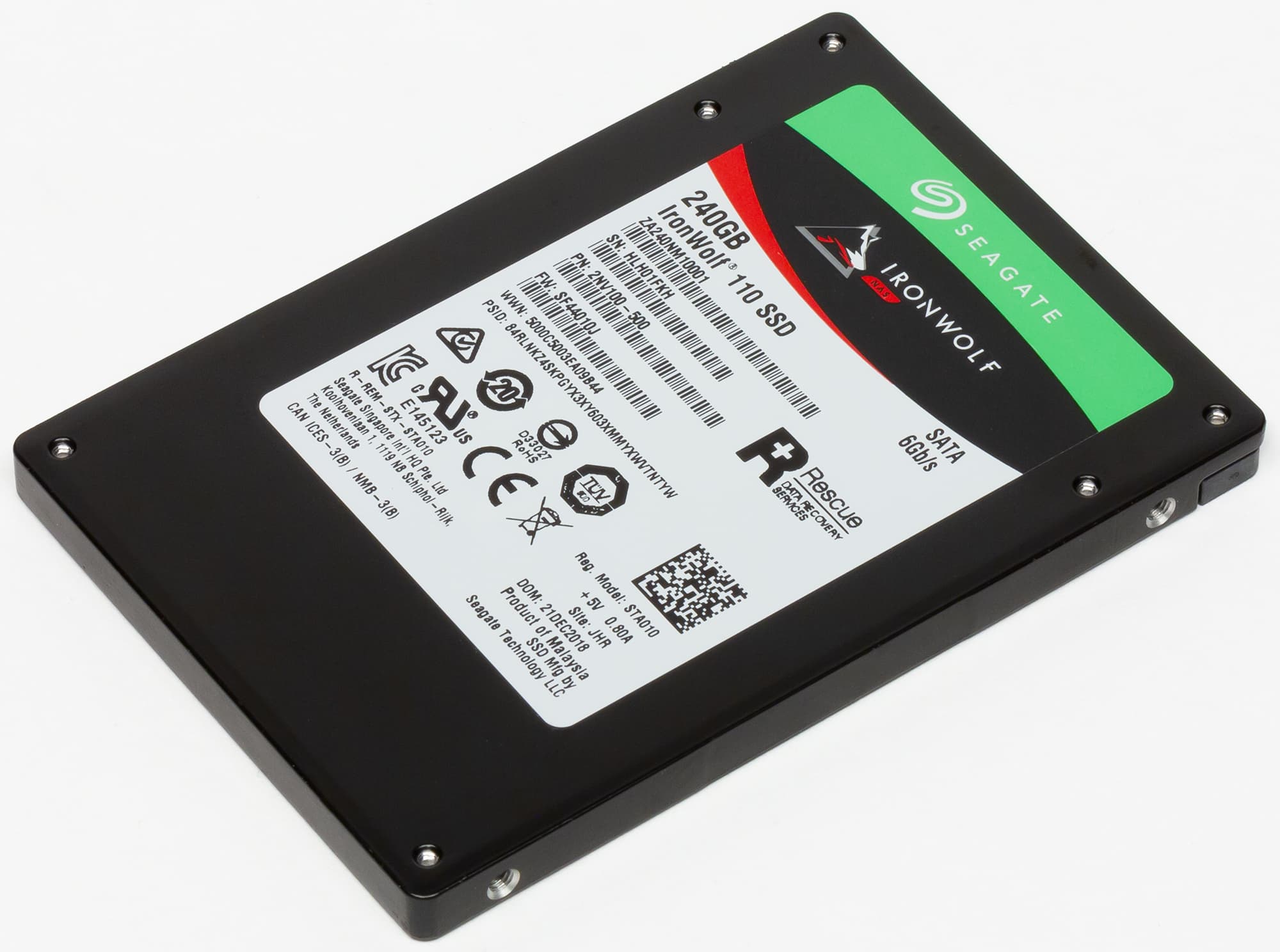 Хоть мы и неоднократно говорили, что ничего принципиально нового (за исключением постоянной борьбы за снижение себестоимости) на рынке SATA SSD давно не встречается и вряд ли появится, иногда и там что-то происходит. В частности, зимой компания Seagate анонсировала свои накопители IronWolf 110, которые сразу привлекли к себе внимание публики — вовсе не какими-то техническими характеристиками, а немного необычным позиционированием: компания называет их первыми твердотельными накопителями, созданными специально для NAS.