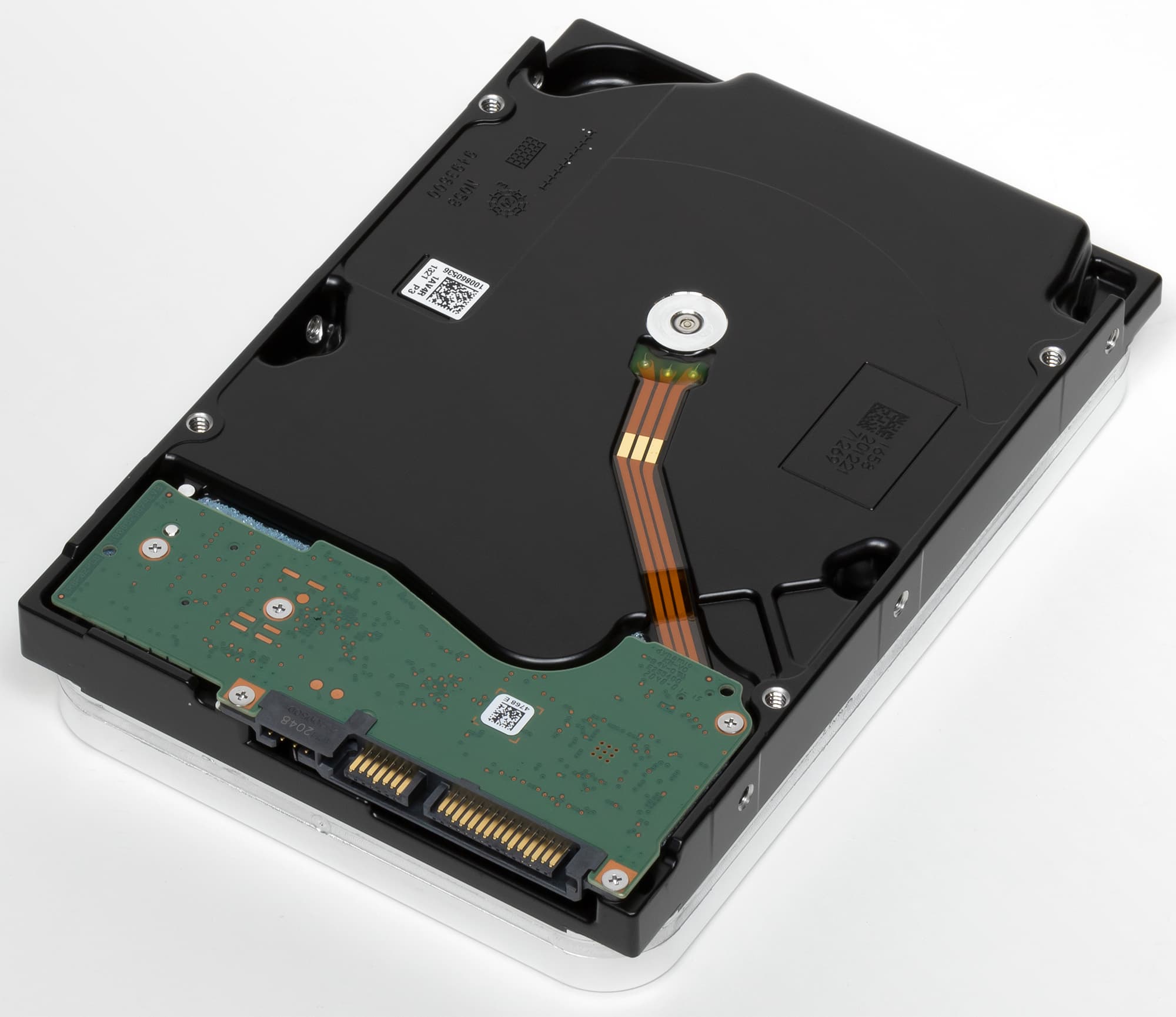 Если взять те же пластины и головы, что появились в Exos X18, но адаптировать их под «воздух», то как раз и получится новая «десятка» этой линейки ST10000VN000 — которая со временем наверняка заменит гелиевый ST10000VN0008. Пока же эта модель только начала свой путь к потребителям, мы остановимся на предыдущем флагмане линейки. Вполне так «флагманском», поскольку здесь тоже пять пластин — больше Seagate в «атмосферниках» не использует. Причем плотность записи по спецификациям та же, что и в новой модели — а скорости чтения и записи по ним же составляют всего 210 МБ/с, что для дисков с такой плотностью и частотой вращения даже немного смешно. Но это значение с незапамятных времен кочует по ТТХ всех IronWolf, хотя даже первые гелиевые «десятки» со своими семью дисками работали быстрее. Что сейчас — проверим. Тем более, что, как уже было сказано, сейчас эти винчестеры интересны и для «нецелевого» использования — после того, как из ассортимента исчезла серия BarraCuda Pro. Лучшее, что официально предлагается для ПК — BarraCuda на те же 8 ТБ, но 5400 об/мин и SMR. Бо́льших по емкости «десктопных» моделей уже нет, более производительных — тоже. Но, поскольку их могут отлично заменить диски для NAS — ничего страшного.