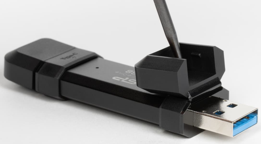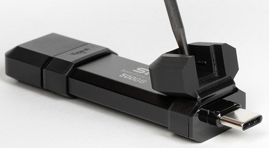 Но даром это не дается. Бо́льшая компактность достигнута меньшей универсальностью: здесь исключительно «старый» разъем USB Type-A. Конечно, в компьютерном мире он пока еще актуальнее, а к телефонам при необходимости многие всё равно предпочитают подключать флэшки через переходник или даже через хаб, так что большой нужды в наличии Type-C не видят. Мы придерживаемся мнения, что в современных «переходных» условиях универсальность по разъемам пора уже считать обязательным требованием, а не дополнительным преимуществом, однако пришли к выводу, что «дисквалифицировать» все флэшки с одним разъемом — значит пропустить некоторые интересные продукты. Отсюда послабления.