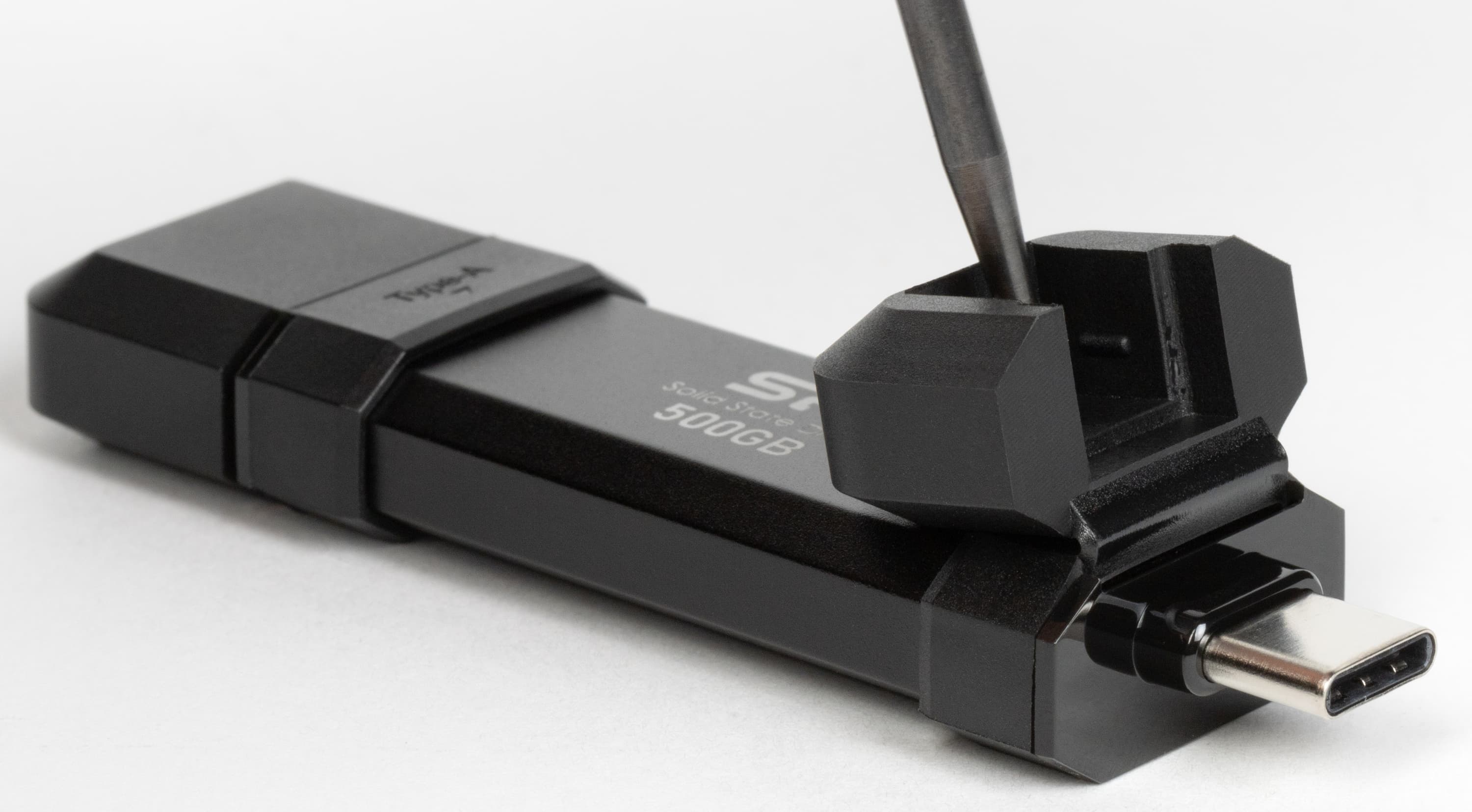 Третьим будет Silicon Power PX10 — как оценка сверху в ассортименте компании. Повторим — не всегда и не во всем сверху, поскольку тут гарантия лишь три года, а не пять, да и удобство использования может быть разным из-за разных габаритов. С другой стороны, как уже было сказано выше, у флэшек есть свои недостатки из-за колпачков, которые либо теряются, либо в открытом состоянии могут мешаться — в общем, кабель некоторые вещи даже упрощает. И о типе разъема можно не слишком задумываться — просто соответствующий кабель взять, и всё.