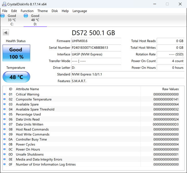 Фактически это флагман модельного ряда компании: дороже уже исключительно модели на двухчиповой схеме, типа недавно изученного Silicon Power PX10. Впрочем, даже это соотношение сил довольно условно: PX10 может иметь емкость до 4 ТБ и скорости чтения/записи до 1050 МБ/с (но не гарантированно), а DS72 ограничен 2 ТБ и записывает лишь со скоростью до 850 МБ/с при тех же 1050 МБ/с на чтении (забавно тут то, что сам Phison для U17 декларирует в пределе лишь 1000/800 МБ/с). В то же время, PX10 продается с трехлетней гарантией, а не с пятилетней, как DS72, стоит немного дороже, а по компактности проигрывает с треском.