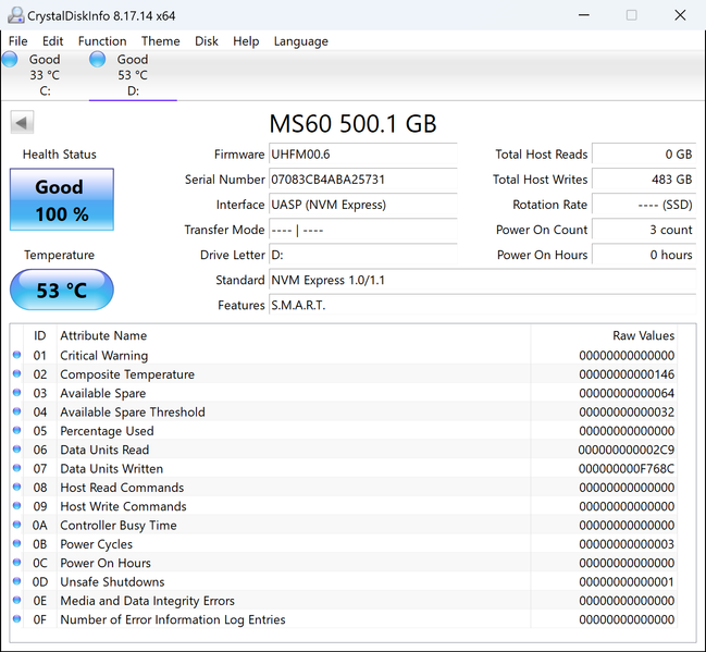 | Silicon Power MS70 500 ГБ | 464 | 464 |
