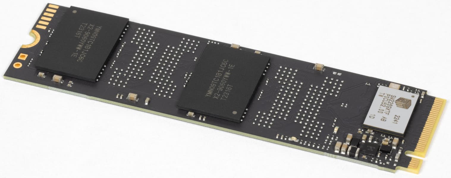 Как уже было сказано выше, это наша первая встреча с такой платформой, но уже вторая — с этим контроллером. Обзор AGI AI818 на том же Realtek RTS5772, но с терабайтом 144-слойного QLC-флэша Intel был опубликован на сайте еще прошлым летом. И это как раз идеальный ориентир, поскольку и контроллер одинаковый, и емкость одинаковая, и даже размер кристаллов памяти одинаковый (и там, и там терабитные), а вот ее тип — разный. Но в современных условиях при покупке недорогого SSD часто остается лишь гадать — каким он будет. Причем и всю экономию производители любят класть себе в карман, так что и цена тут не помощник. Зато после покупки уже не спутаешь. Вот точные размеры этой самой разницы нам и интересны.