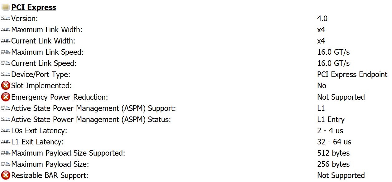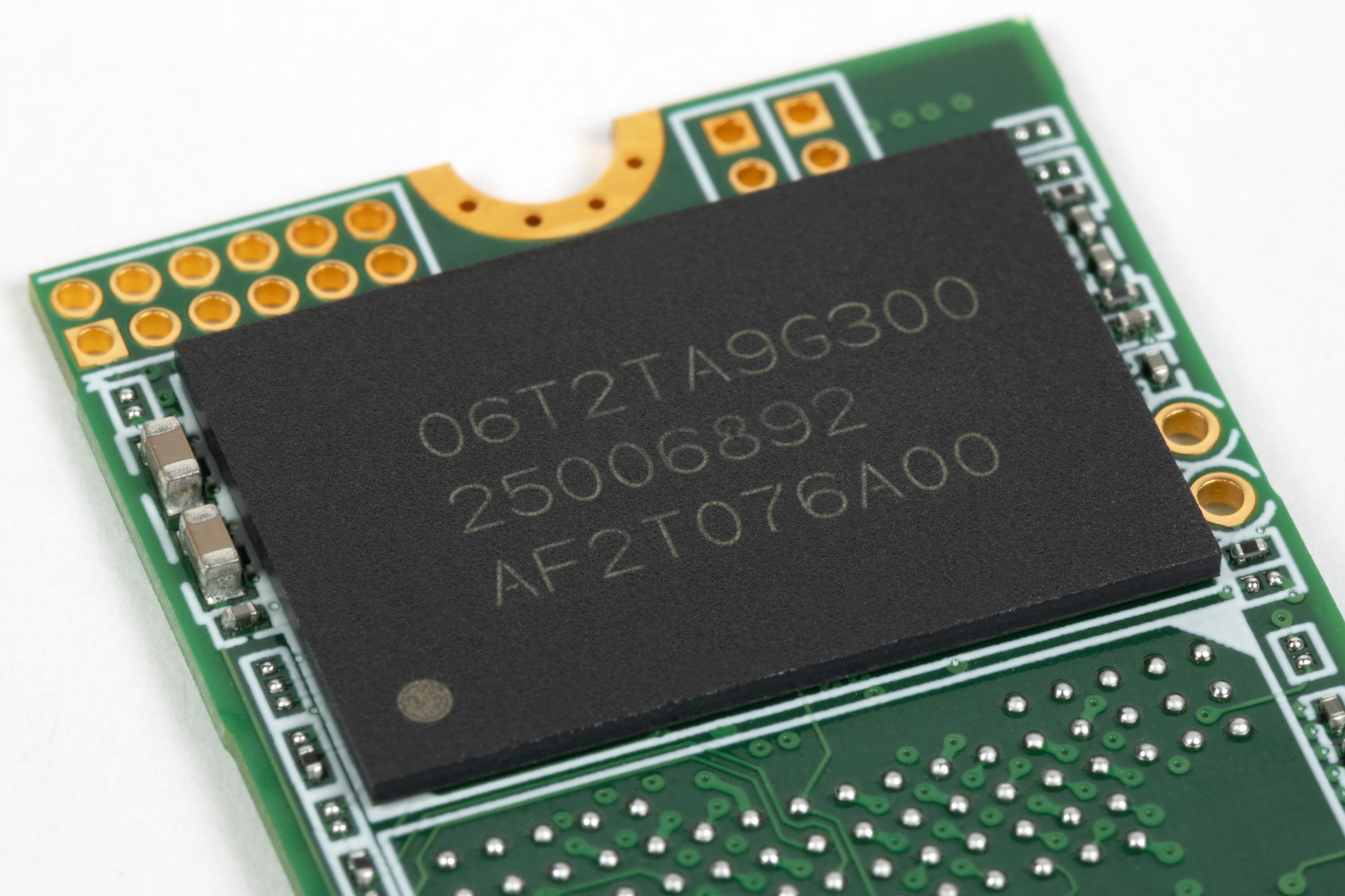 Они тоже в точности такие же, как и в Endura ED90, и с той же маркировкой. Диагностические утилиты же тогда показали, что внутри каждой такой скрывается по четыре кристалла 232-слойной TLC-памяти Micron B58R по терабиту каждый.