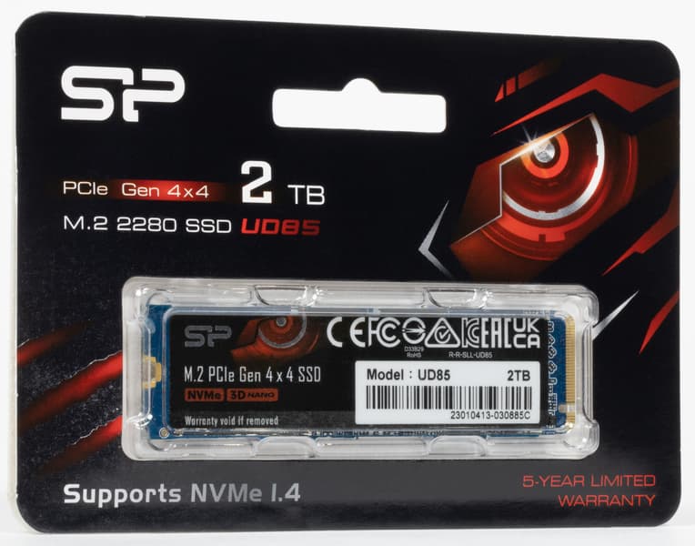 Все условия для откапывания стюардессы сложились. Уже, естественно, немного под другим соусом, нежели ранее — не просто недорогой SSD под PCIe Gen4, а очень дешевый SSD — но с Gen4. Именно под таким девизом в начале года был выпущен Silicon Power UD85. Во всяком случае, такой была задумка производителя, однако любые благие намерения могут быть скорректированы розницей. Цена этого SSD в США где-нибудь на Amazon вопросов не вызывает — 80 долларов за 2 ТБ TLC-памяти выглядит красиво: даже Kingston NV2 (где есть серьезные шансы заполучить QLC) продается дороже, а WD Green SN350 (где гарантировано QLC и PCIe Gen3) буквально на три доллара дешевле. Причем у обоих упомянутых лишь три года гарантии, а Silicon Power дает пять — в таких условиях явное преимущество. А вот в Москве и NV2 дешевле, и не только он. Много что дешевле — включая некоторые накопители на топовых восьмиканальных контроллерах с DRAM-буфером, которым бюджетка типа Silicon Power UD85 или его более старший собрат UD90 (отличается только контроллером, но не слишком — в нем встречаются безбуферные же Phison E21T и Maxio MAP1602) с технической точки зрения не конкурент. Так что при таких исходных данных нужно быть очень большим фанатом марки (если такие есть), чтобы предпочесть Silicon Power — такие накопители в современных условиях должны стоить строго дешевле 10 тысяч (лучше, даже, девяти), а пока они лишь подешевели с 13 до 11 с копейками. Но протестировать SSD нам это никак не мешает — поскольку просто интересно, как такая связка работает. Последний раз с Phison E19T мы сталкивались давно, причем только в емкости 500 ГБ, а оставлять позади белые пятна не в наших традициях. К тому же, полученные результаты и в будущем обязательно пригодятся.