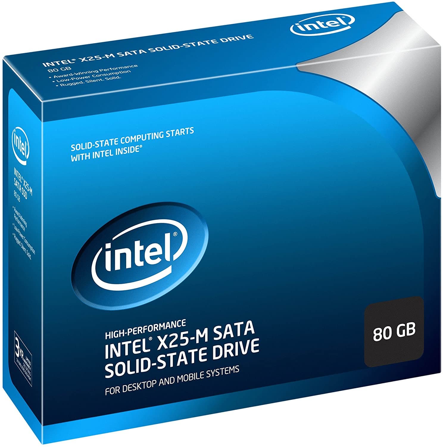 Конкретный временной интервал можно определять по-разному — все-таки первые SSD появились еще в прошлом веке (просто на массовость совсем не претендовали, да и использовали еще не флэш-память изначально), да и момент внедрения PCIe 4.0 в какой-то степени плавающий. Но нам нравится такая формулировка. Поскольку первые массовые системы с поддержкой PCIe 4.0 — AMD AM4 образца середины 2019 года. А первый SSD, ориентированный на массового пользователя и оказавший существенное влияние на рынок в целом, появился в 2008 году — им стал Intel X25-M. Правда изначально его цена была не слишком-то массовой: накопитель на каких-то 80 ГБ был оценен компанией в $595, т. е. примерно 7,5 долларов за гигабайт. Сегодня за $75 можно приобрести приличный SSD на 500 ГБ — тогда столько стоили 10 ГБ. Хотя и последнее по тем временам было интересным предложением — типичными для предыдущей эпохи были цены в районе 1000 долларов за 64 ГБ. Intel удалось существенно уменьшить стоимость своих SSD благодаря использованию недорогой памяти, типа MLC — на тот момент редко используемой в SSD из-за низкой «живучести» и производительности. Для компенсации этого эффекта компания использовала интеллектуальный контроллер, «обученный» выравниванию износа и многому другому. Что и определило развитие рынка на долгие годы вперед. Сам по себе флэш — дорог, быстрый и выносливый — очень дорог. Поэтому идея использовать медленный и дешевый, но вкладываясь в разработку контроллеров, которые позволят накопителям в целом работать не хуже, чем основанные на более дорогой памяти, но с простым контроллером — очень перспективна. И была с энтузиазмом подхвачена всеми производителями, так что уже в 2009 году мы увидели массу использующих данную концепцию SSD. Это привело к быстрому снижению цен: к концу года речь зашла уже о примерно 3-4 долларах за гигабайт — то есть первое двукратное снижение цены произошло буквально в первый же год массовой экспансии. Далее оно только усиливалось.
