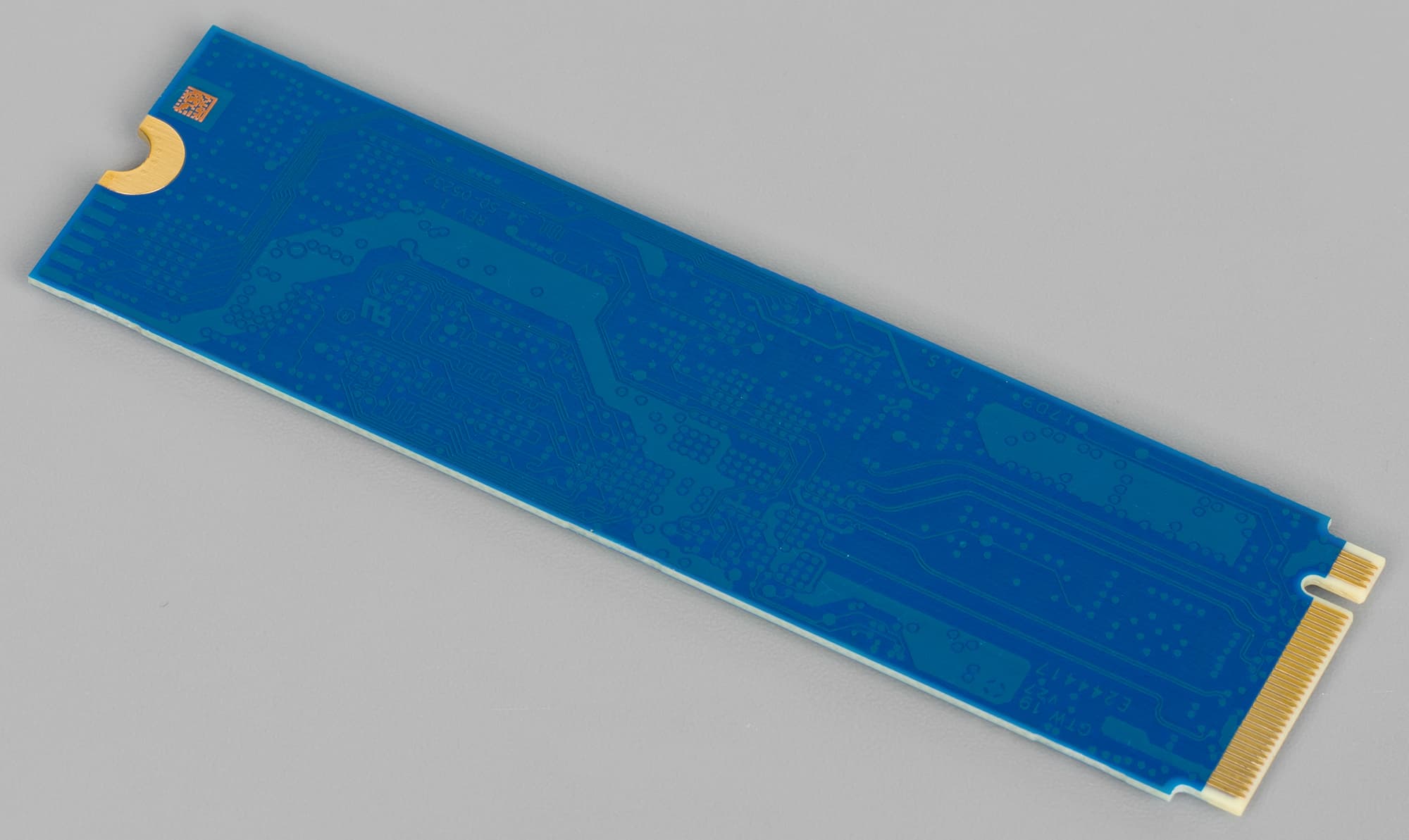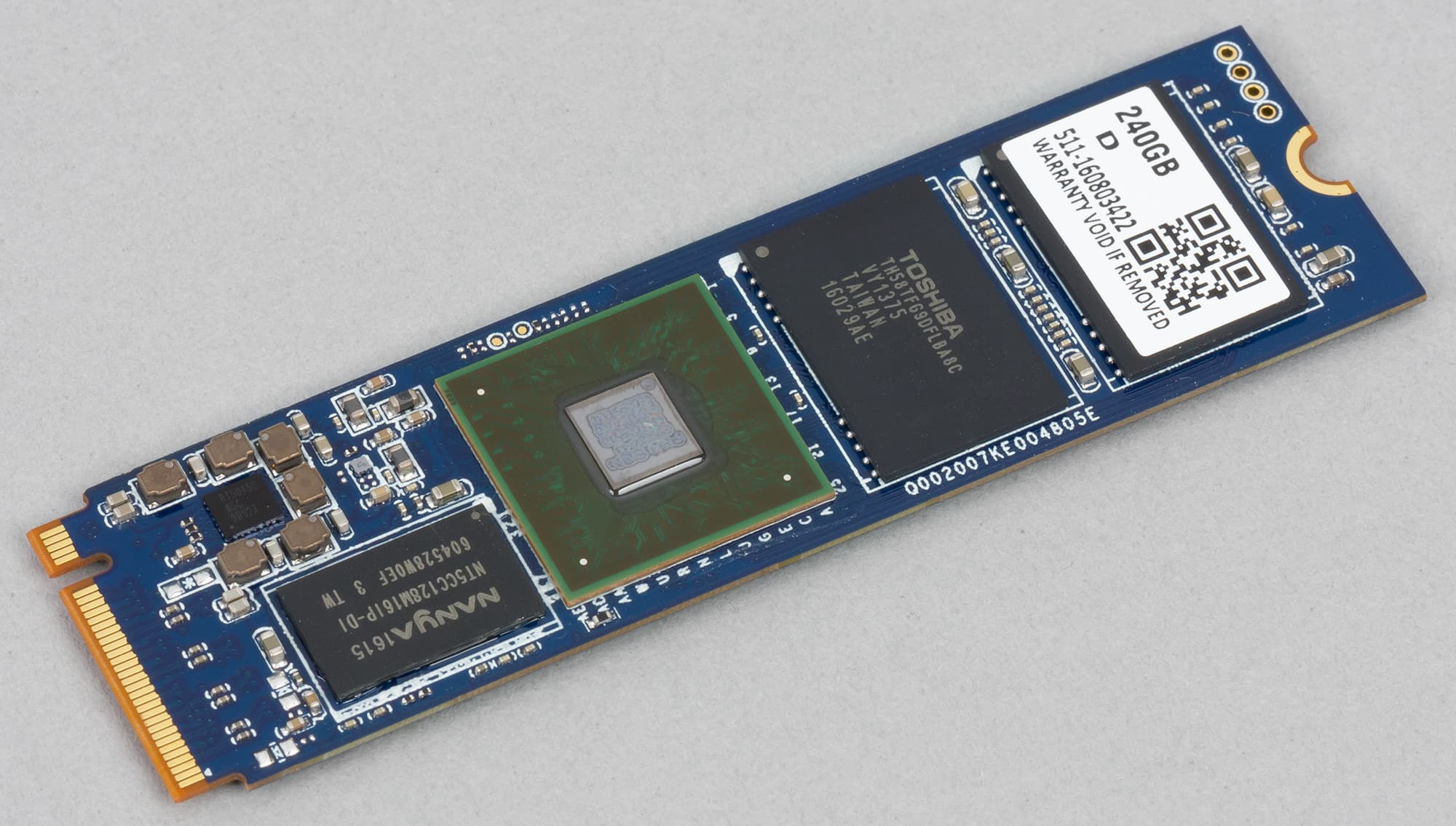 Достоинствами этой модели (и аналогичных) является использование MLC-памяти, недостатком — фактически оно же. Скоростные характеристики обеспечить можно хорошие — с ценой дело обстоит куда хуже: TLC все-таки заведомо дешевле, особенно в больших объемах. Еще один потенциальный недостаток — кристаллов 15 нм планарной MLC-памяти по 128 Гбит нужно много, так что и в модификации на 480 ГБ (кроме нее традиционно доступны 240 и 960 ГБ) приходится применять двухсторонний монтаж. При этом Е7 потребляет достаточно много энергии и, соответственно, быстро нагревается, так что об его охлаждении не мешает и позаботиться — во всяком случае, если нужна максимальная производительность. В комплекте с адаптером для полноразмерного слота PCIe часть тепла от устройства отводится, но, к сожалению, не с контроллера, а с обратной стороны платы M.2. Если же купить только таковую, причем использовать в слоте M.2 на системной плате — что-то нужно будет придумывать. Тем более, что в Kingston зачем-то решили приклеить «гарантийную» наклейку именно на сторону с контроллером: в принципе, это может немного защитить его от механических повреждений (поскольку кристалл открыт), зато мешает работать над охлаждением. С другой стороны, в обычных режимах работы оно и не требуется — но создавать проблемы на пустом месте, как нам кажется, изначально неверный подход.