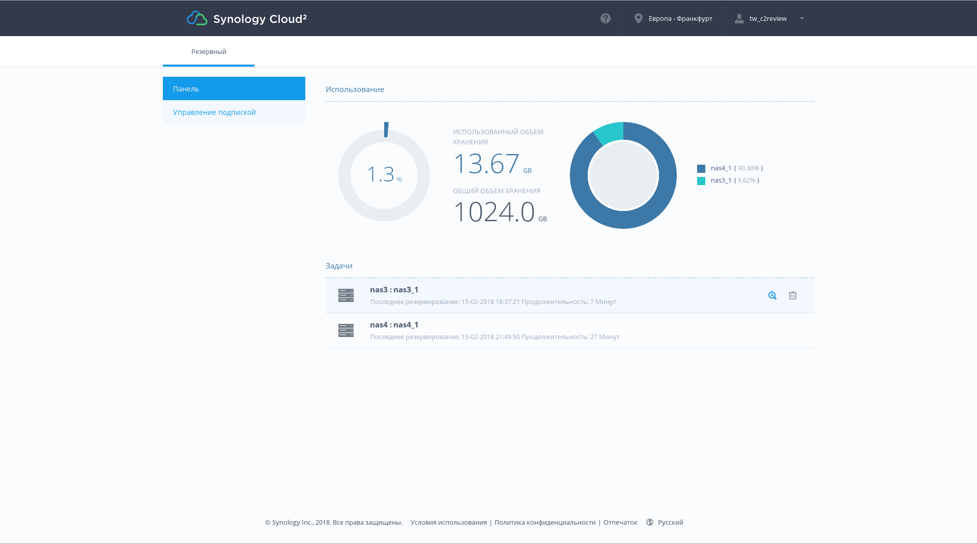 Использование внешних облачных сервисов для хранения данных уже давно является достаточно распространенной практикой. Данные сценарии имеют как плюсы, так и минусы, но без сомнения для некоторых категорий пользователей они предоставляют очень удобный инструмент для повышения сохранности документов. На рынке представлено множество сервисов, выбрать из которых бывает очень непросто. Ключевыми параметрами здесь являются стоимость и набор сервисных функций. Компания Synology осенью прошлого года представила собственную услугу в этом сегменте — Synology C2 Backup. Имея богатый опыт управления файлами, она планирует привлечь клиентов уникальными дополнительными услугами. Программная поддержка есть в большинстве моделей сетевых накопителей этого производителя, начиная с 11-го модельного года. Предусмотрено использование бесплатного 30-дневного тестового периода для знакомства с этим сервисом (потребуется кредитная карта для регистрации). Услуга предоставляется в Европе, дата-центр также находится в этом регионе. Из ключевых особенностей продукта компания выделяет простую ценовую политику без скрытых платежей, безопасность передачи данных и удобные средства восстановления и доступа к файлам.