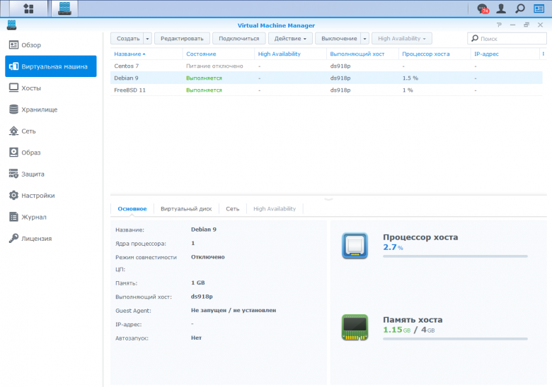 Однако в конце прошлого года компания объявила об официальном выпуске модуля Virtual Machine Manager и технологии Virtual DSM. Решение поддерживает запуск виртуальных машин с различными операционными системами, а также виртуализацию самой DSM. Последнее может быть интересно пользователям мощных устройств при необходимости более строго разделения доступа из разных подразделений компании или внешних клиентов. Некоторые функции Virtual Machine Manager также являются лицензируемыми за дополнительную плату.