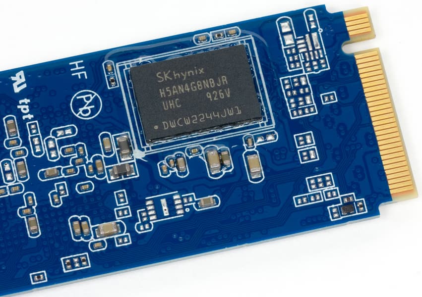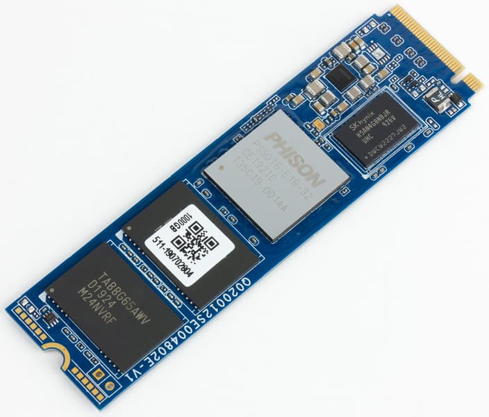 Повторимся, таковы все модели на Phison E16 — никакого разнообразия в данном случае Phison не предлагает, так что без наклеек отличить Cardea Zero Z440 от упомянутой модели Aorus можно разве что по цвету текстолита. На текстолите при этом установлены все те же четыре чипа флэш-памяти — по восемь кристаллов 96-слойной BiCS4 3D TLC NAND Toshiba емкостью 256 Гбит каждый (у старшей модификации отличаются только кристаллы — там они по 512 Гбит). Плюс две микросхемы DDR4L-2400 SK Hynix по 8 Гбит каждая. И, естественно, сам контроллер — главной особенностью которого, как уже было сказано, является поддержка PCIe 4.0, хотя определенные преимущества перед предшественником (Phison E12) он имеет и в системах без поддержки нового интерфейса.