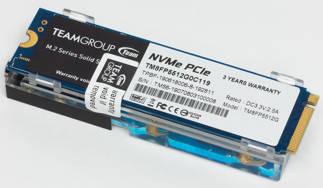 А вот флэш-память в подавляющем большинстве твердотельных накопителей на Е12 одинаковая. И тут никакого удешевления нет: 64-слойная BiCS3 3D TLC NAND Toshiba с кристаллами по 256 Гбит. В старшей модификации (емкостью 1 ТБ), правда, приходится использовать 512 Гбит — но с сохранением одностороннего дизайна платы, что можно считать преимуществом устройств, подобных МР34/Cardea перед более именитыми (и, обычно, более дорогими) конкурентами на том же контроллере: они хотя бы в любой слот «лезут». Накопителей, емкостью более 1 ТБ, в этих линейках TeamGroup на данный момент нет — компания ориентируется на самые ходовые объемы, к коим в первую очередь вообще пока относятся 256 и 512 ГБ.