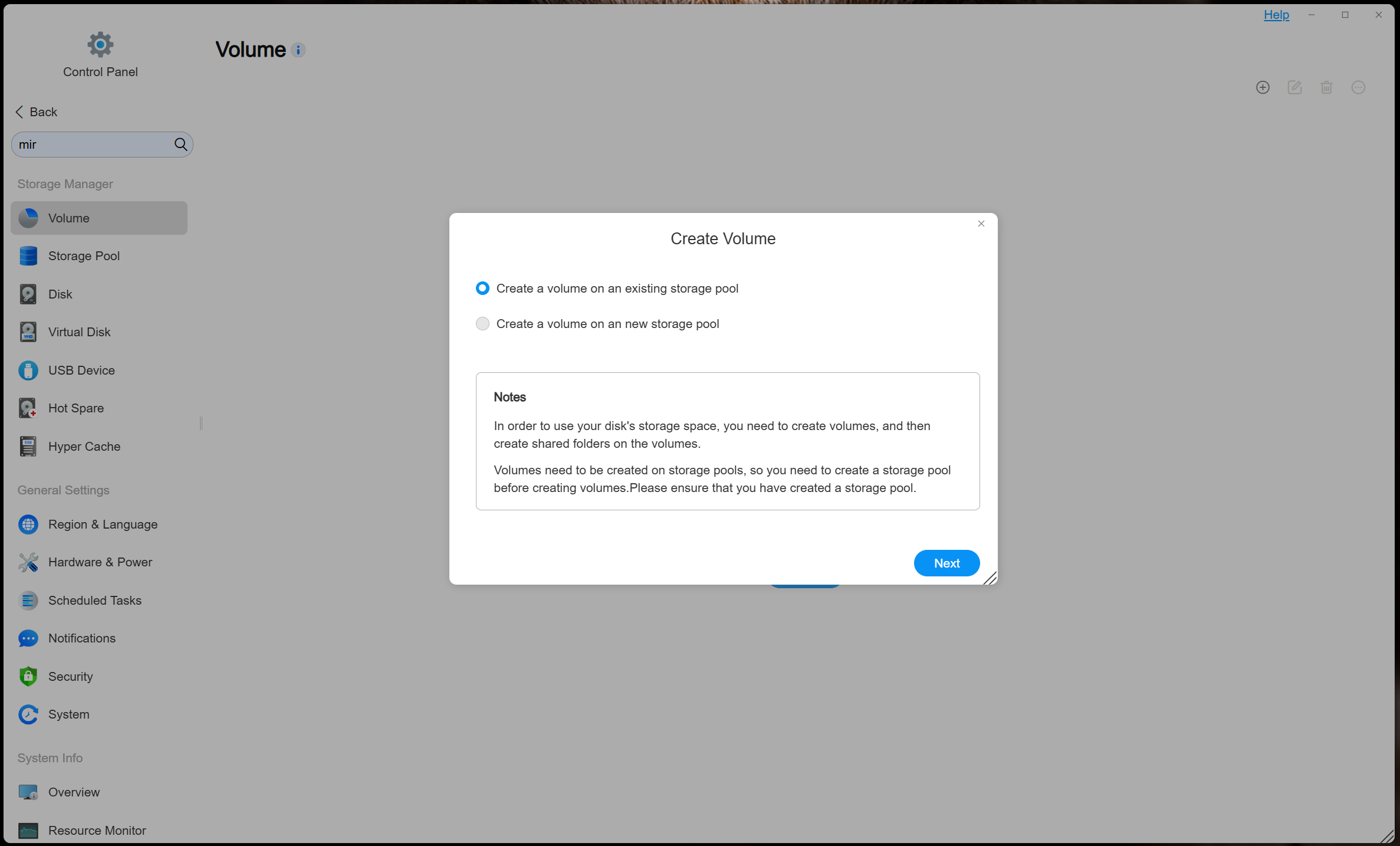 Создан том. Доступная емкость — 1,82 ТБ.