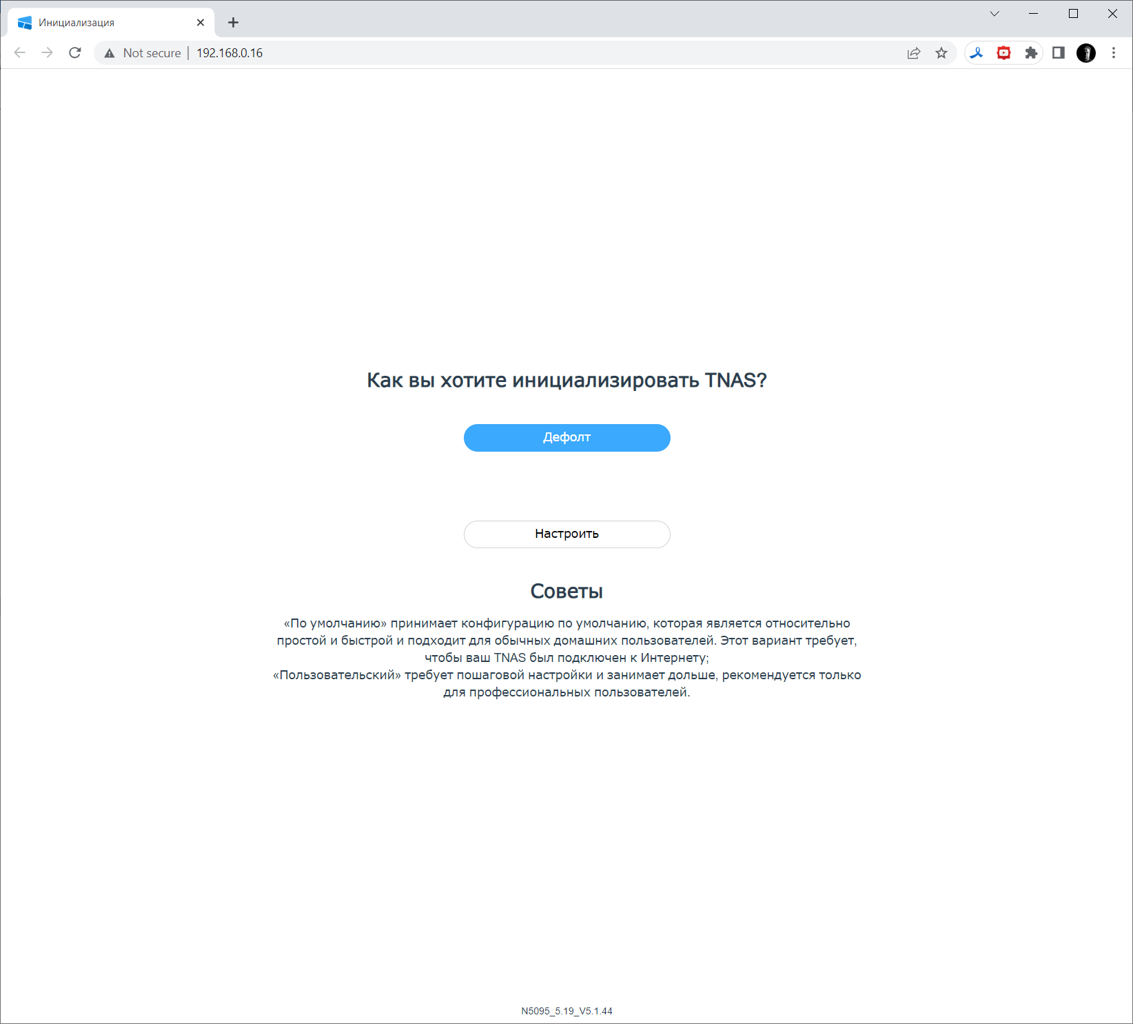 Приложение обнаружило его в сети с адресом 192.168.0.16. Нажимаем на пиктограмму «вход», и в браузере открывается первая страница инструкций по инициализации (установке).