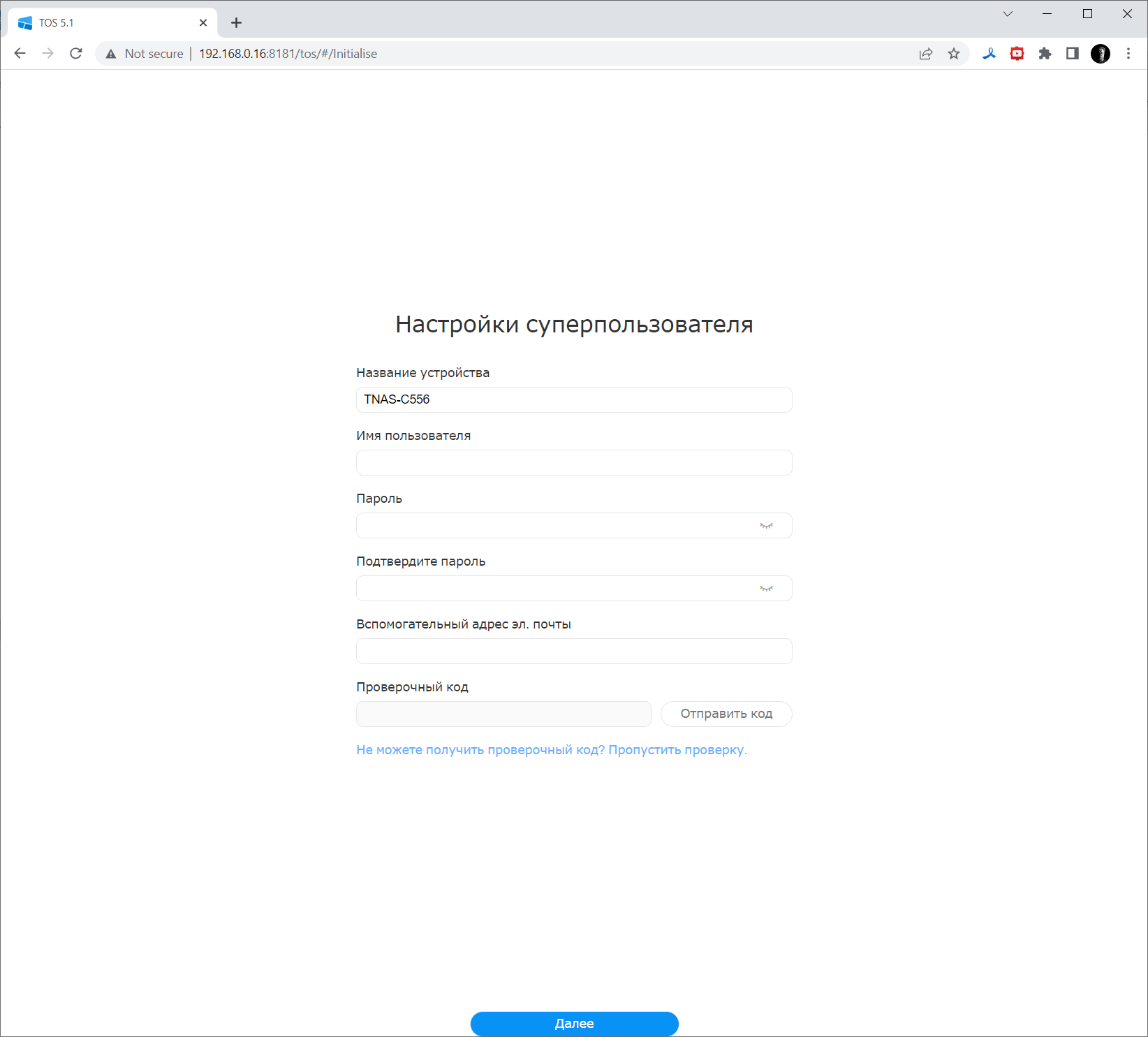 Разметка дисков, создание пула хранения, и логического устройства (тома) при выборе сценария по умолчанию происходят автоматически без запросов к пользователю. Затем следует перезагрузка устройства. После нее остается определить суперпользователя системы (root отключен создателями), придумать для него пароль, ввести работающий адрес электронной почты и получить по ней код верификации.