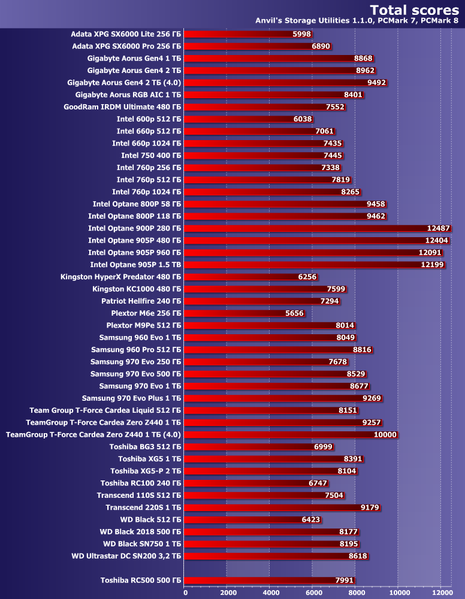 Как уже было показано выше, RC500 часто ведет себя подобно другим накопителям на базе Phison E12 — чуть проигрывая на операциях чтения из-за использования четырехканальной модификации контроллера и чуть выигрывая при записи за счет более быстрой памяти. Общий итог — закономерный: не рекордный, конечно, но для целевого сегмента очень хороший.