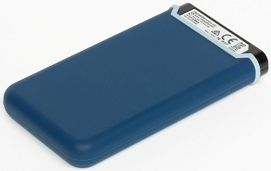При этом корпус получился многослойным, а снаружи на основную металлическую часть натянут силиконовый чехол синего цвета — такой же, как применяется компанией в «защищенных» внешних винчестерах. Там он теоретически позволял смягчить возможные удары, к которым это оборудование относится крайне неодобрительно, флэш-память же к этой проблеме менее восприимчива.